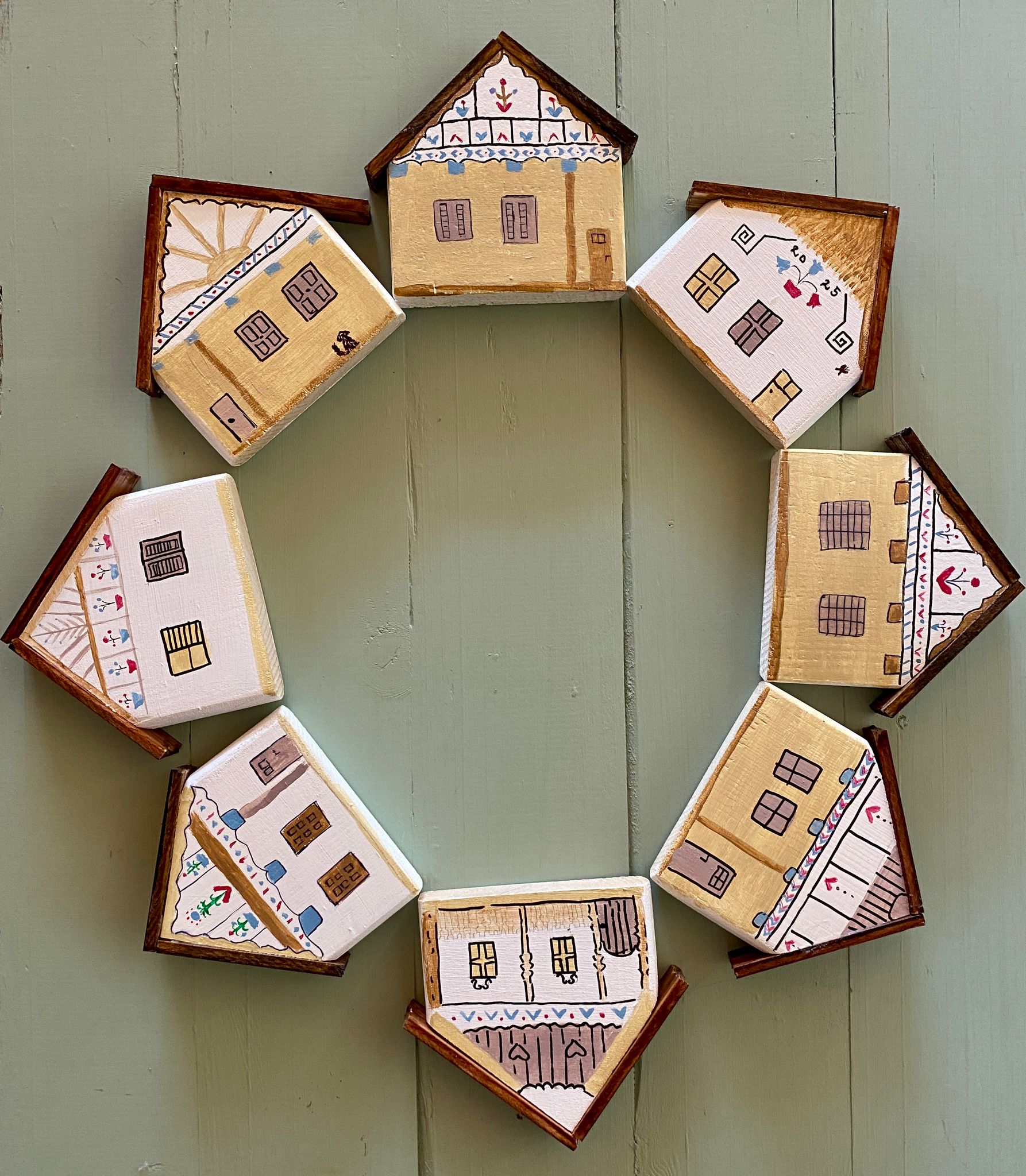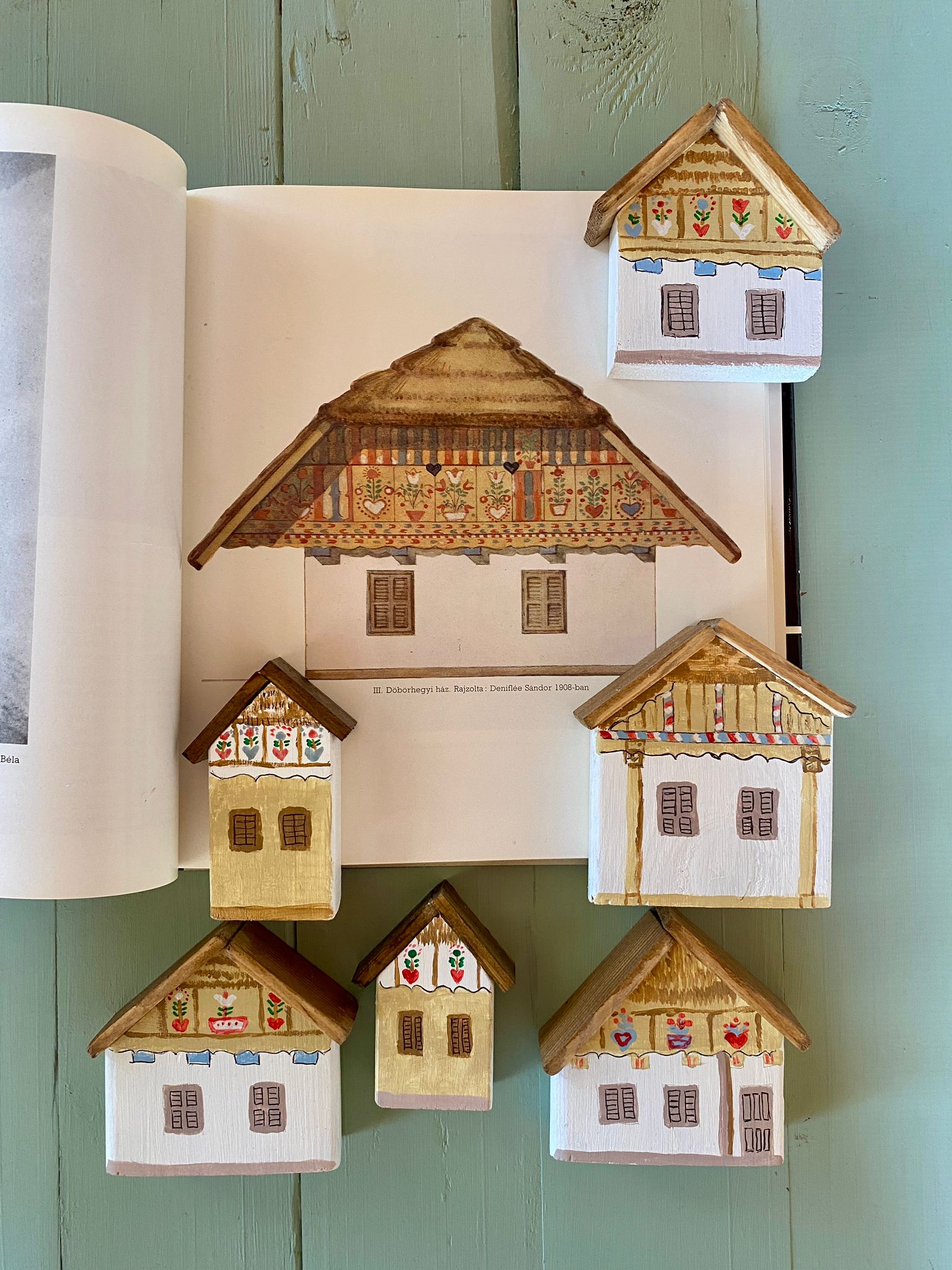 Legújabb alkotásai apró, festett népi házikók, amelyeket a 20. század eleji göcseji házak inspiráltak. A házikókra picike egereket, cicákat, fecskéket fest, hogy a gyerekek nézegethessék. Ezeket óvodák is vásárolják fajátékoknak, építőkészleteknek – természetes anyagból, szeretettel és történettel.