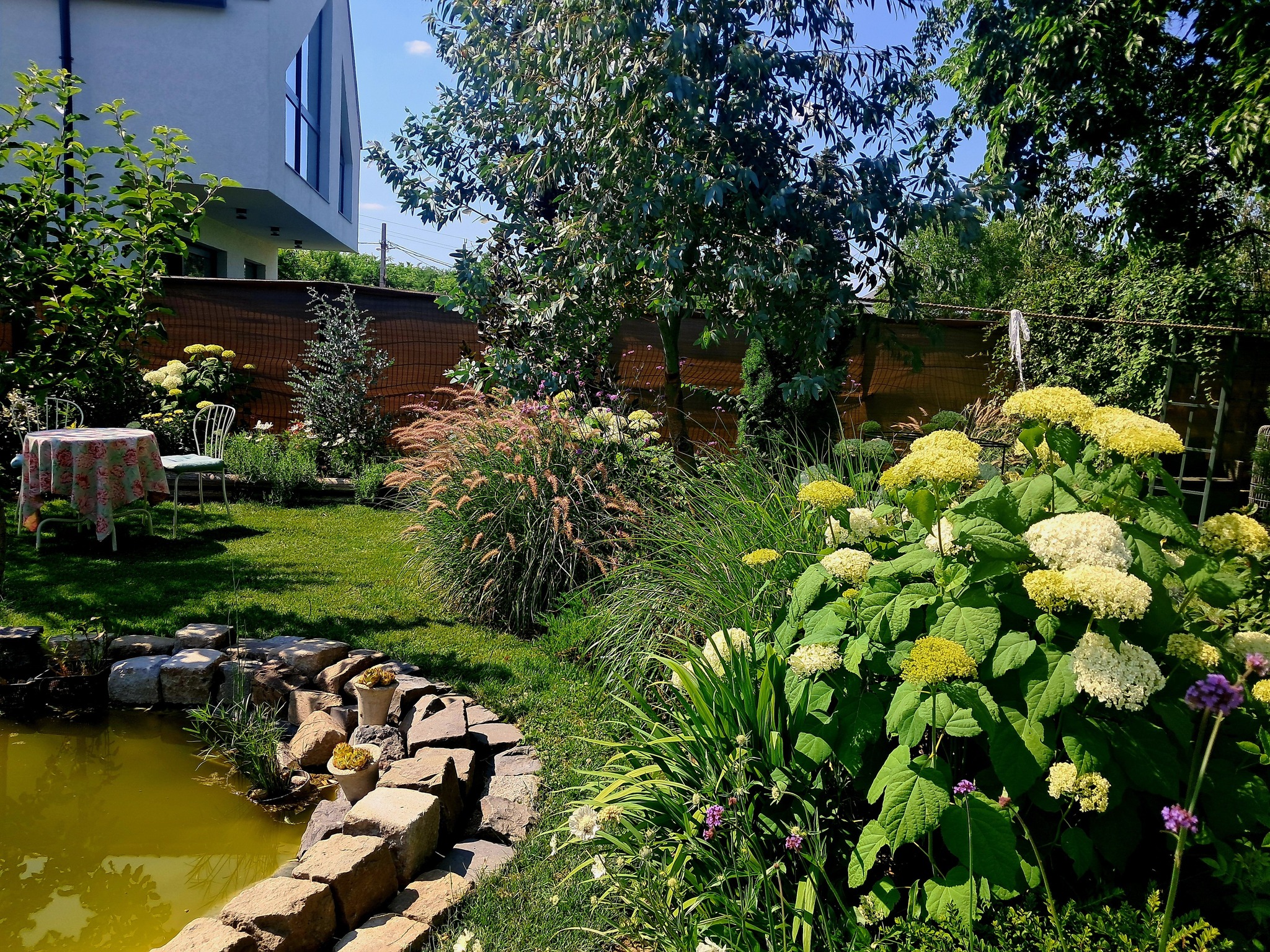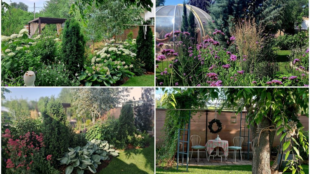 A kert nem egy tervezőasztalon született, hanem Edina két keze munkájával. Munka után, hétvégén, vagy amikor csak tehette, ő ültette el a fákat, virágokat, készítette el az ágyásokat, dekorációkat. Apránként, plusz munkákat vállalva gyűjtötte össze a virágokra valót, és mindent maga tanult: videókból, könyvekből, más magyar kertépítőktől.