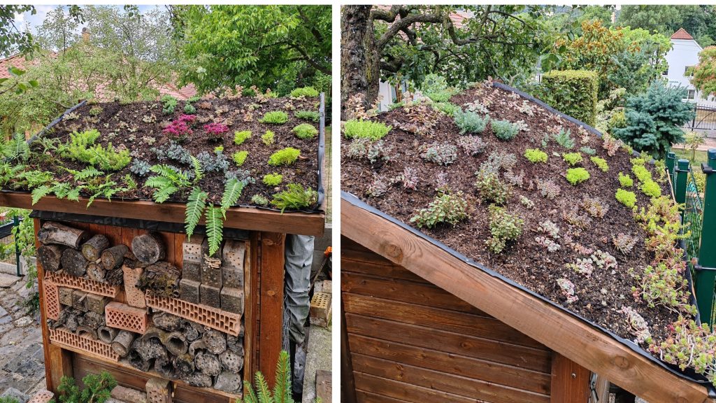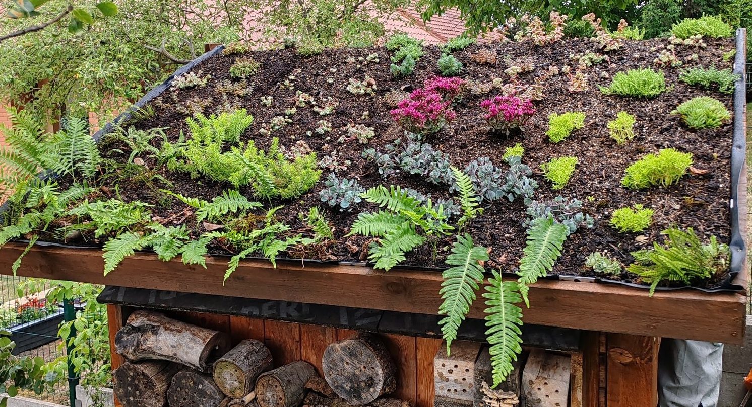 Önfenntartó zöldtetőt épített a kerti szerszámosra a miskolci dísznövénykertész