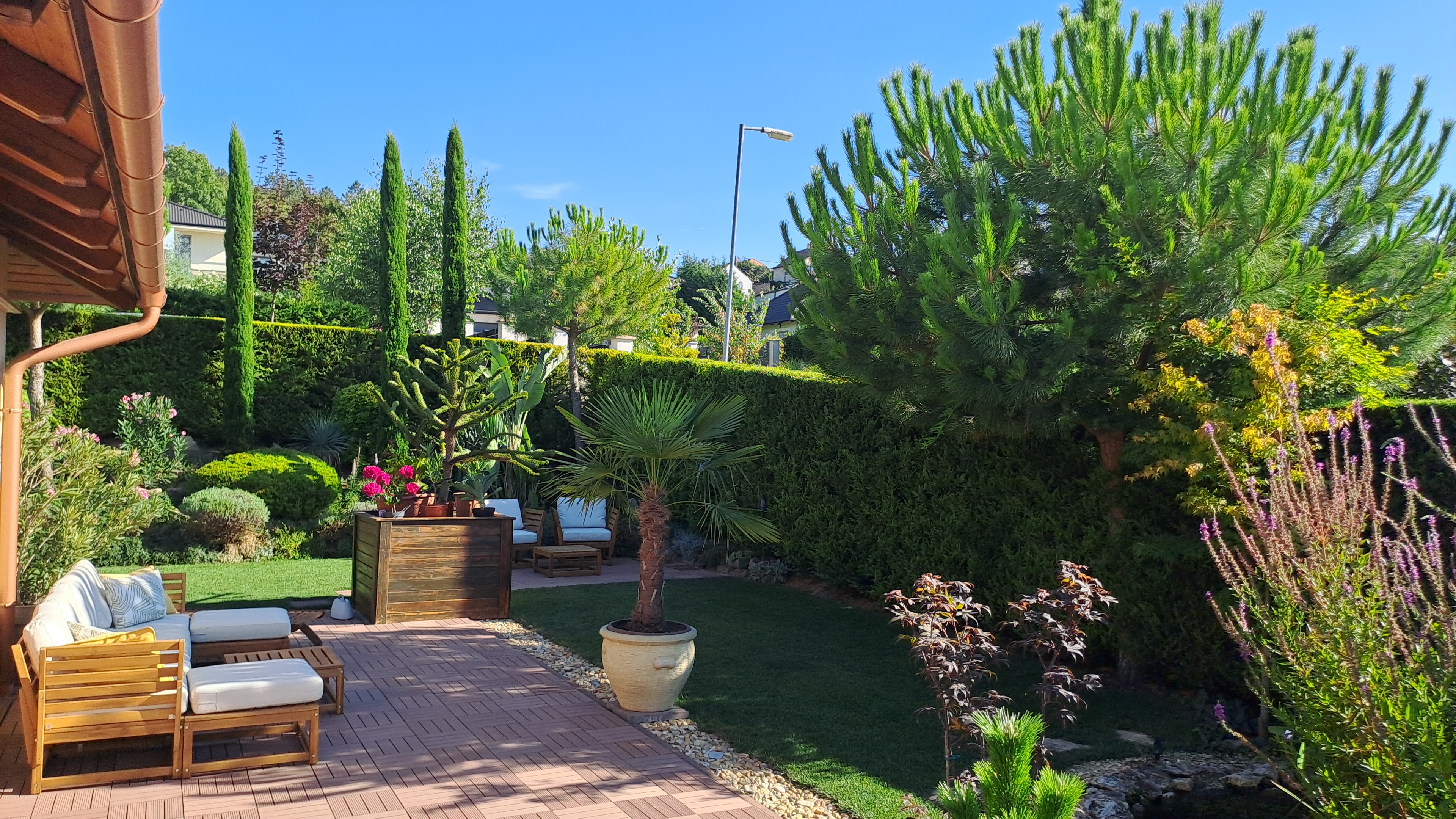 A kis terület miatt sajnos új növényeknek már csak úgy tudok helyet biztosítani, ha valamelyik átadja a helyét. A kezdetekben vásárolt nem olyan különleges példányok esnek ennek áldozatul, de róluk is gondoskodok és el szoktam azokat ajándékozni. A nagy kertépítő projektek már lezárultak nálunk, mivel nincs több helyünk, így a kert fenntartása a fő feladat, ami számításaim szerint heti 4 órára tehető. Ebbe benne van a fűnyírástól kezdve a nyári időszakban kéthetente végzett tápoldatozás és a kaspós növények kézi locsolása is