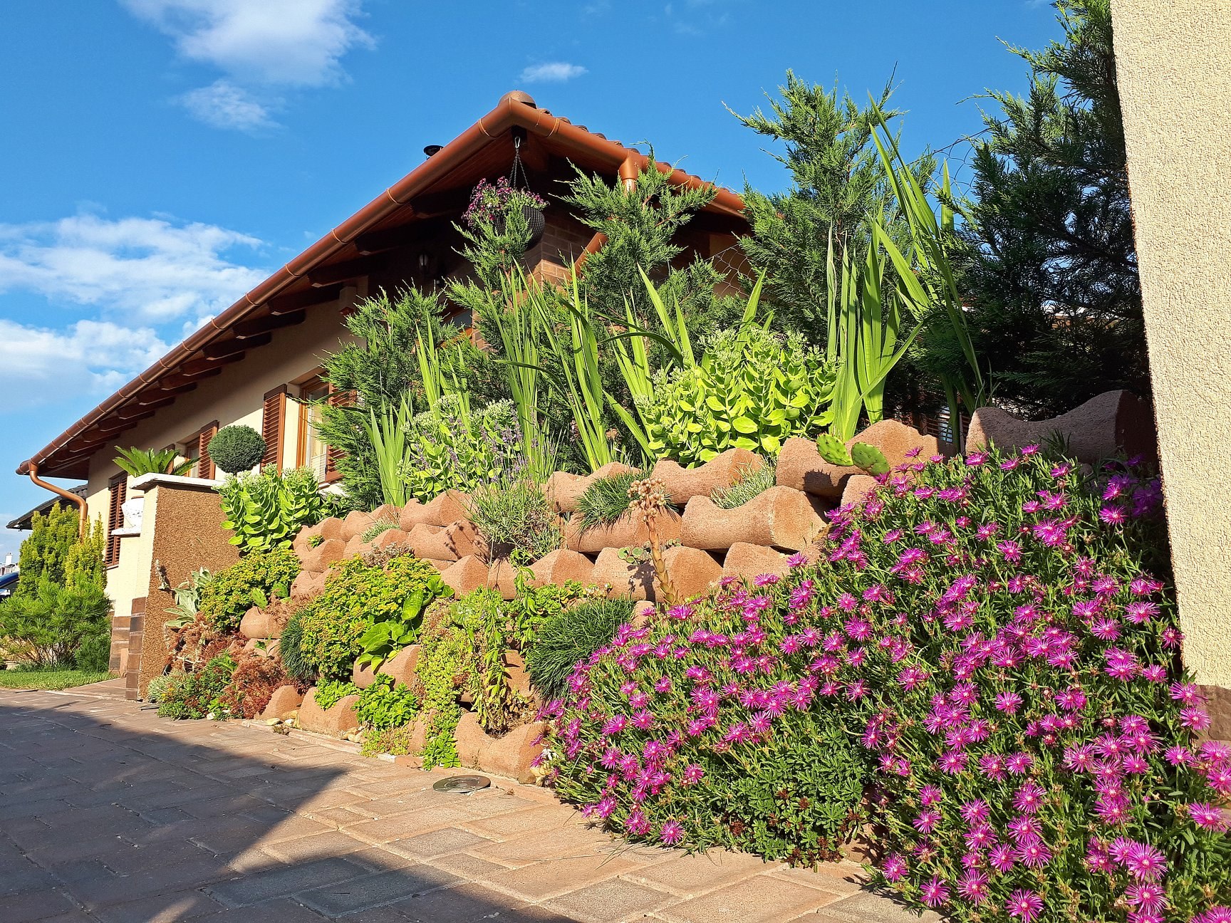 A kert ékköve az őstörzses olajfa, ami a ház védett, napos fekvésű oldalához van ültetve.