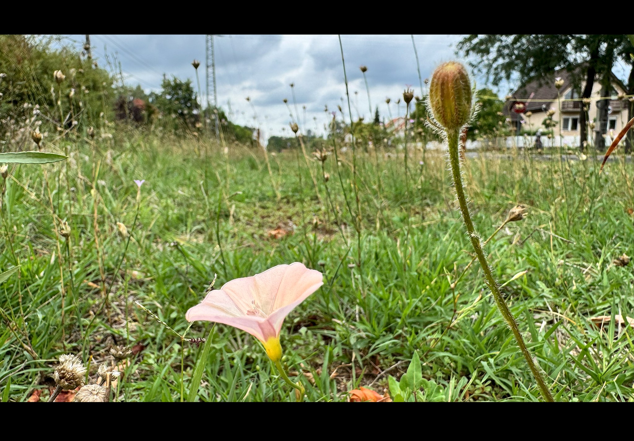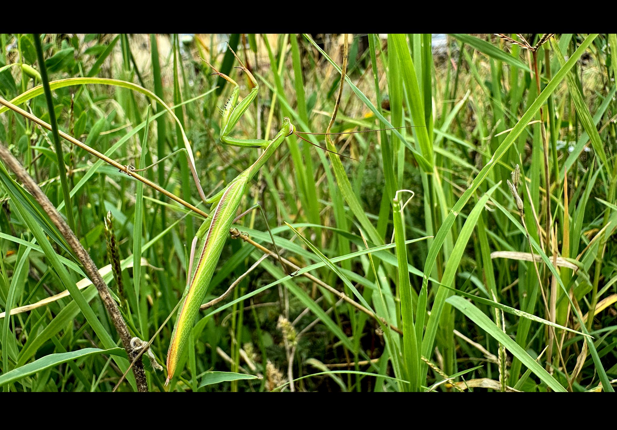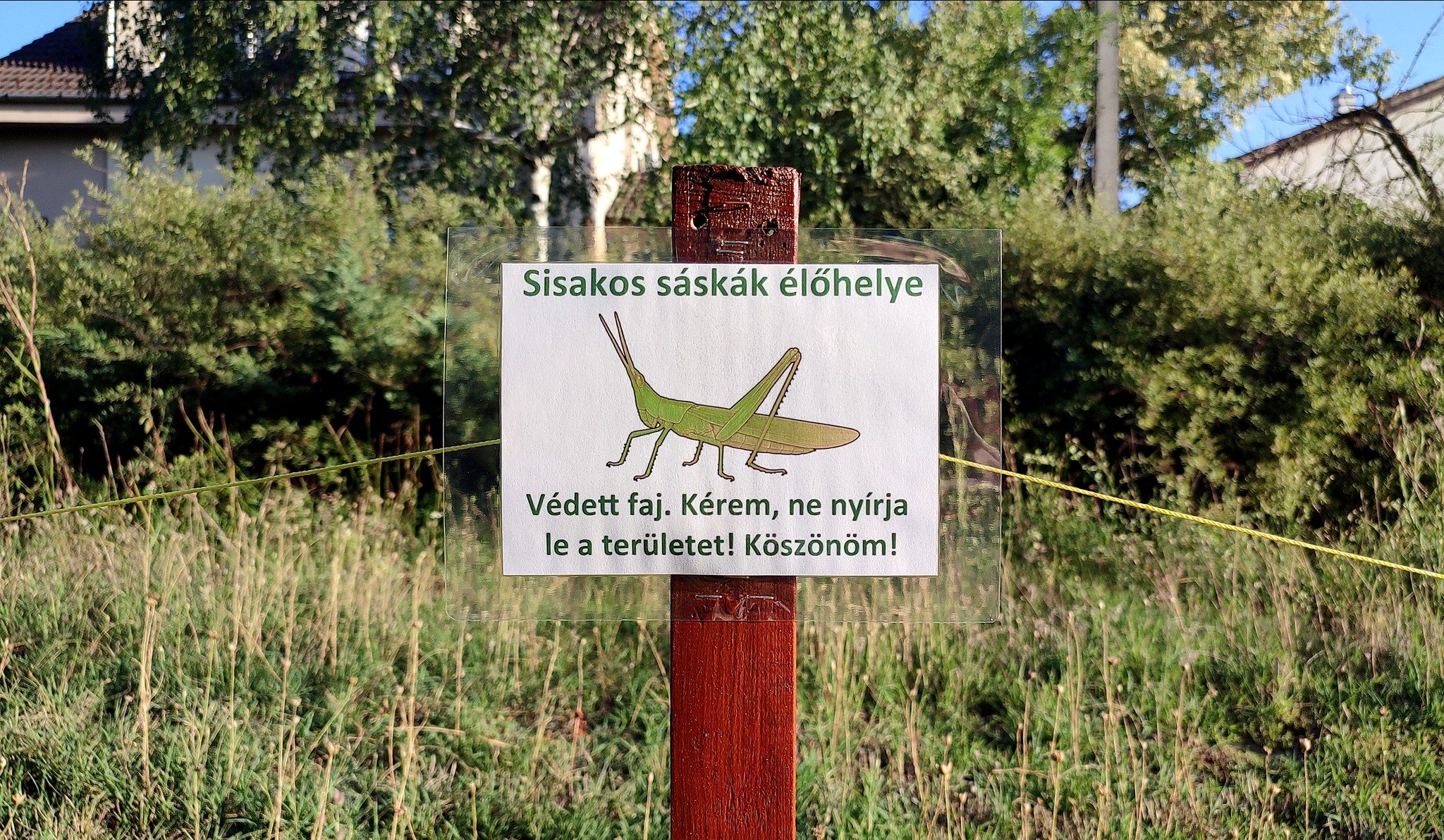 Ez különösen júniusban fontos, amikor az imádkozó sáskák, sisakos sáskák és egyebek még aprók, nincs szárnyuk, nem tudnak hatékonyan menekülni. Júliusban került sor a fűnyírásra, de az első méterek után máris felszökkent pár sisakos sáska. Így leállítottam a gépet és eldöntöttem, hogy a korábbi védett sávot jelentősen bővítem. Az út mellett levágtam azért valamennyit, de a többi részt nem bántottam