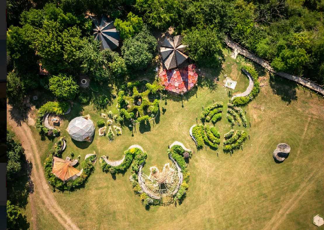 A tanya sok hektáros terület. A fesztiválok egy olyan épített környezetben zajlanak, ami egyedülálló a világon. Ha tehetjük maradék és természetes anyagot használunk, organikus világot teremtettünk, remélve, hogy a természet érzi a hálánkat, hogy a két esemény időszakán intenzívebben használhatjuk.