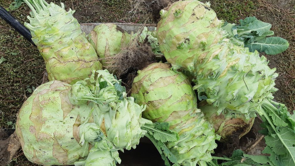 Krisztián kertjében a gigakaralábéból 15 nőtt meg idén őszre, a nyári, kisebb rokonok már elfogytak.