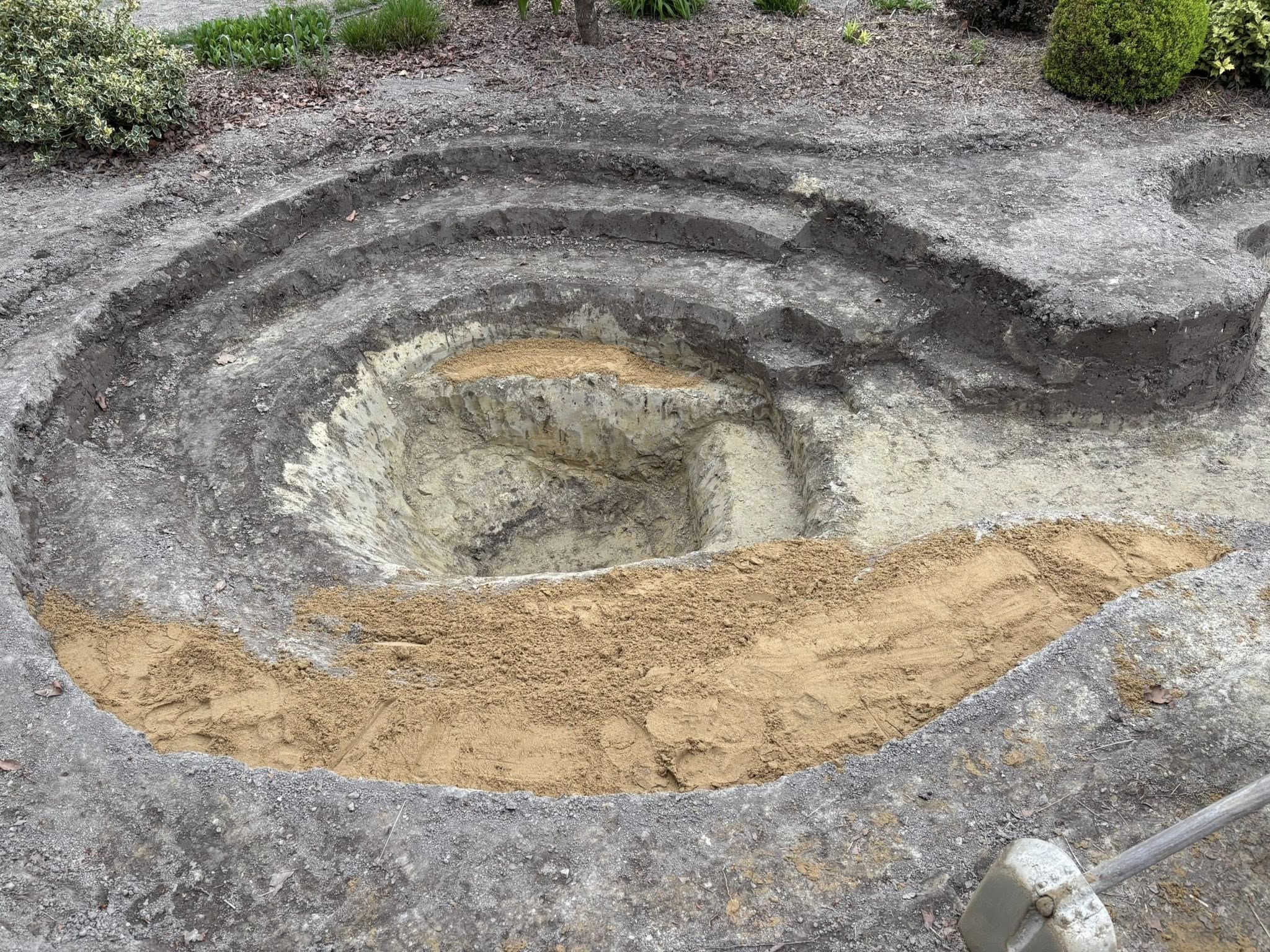 Már régebben szerettem volna biotavat. A kislányunk még nagyon kicsi volt, és gyakran jártak hozzá kortárs barátnők, ezért aggódtam. A téli időszakban több hetet töltöttem olvasással, tanulással, több forrásból merítettem, hogyan lehet úgy létrehozni, hogy ne kelljen hozzá technikai berendezéseket vásárolni, hogy önfenntartó módon működjön. Végül tavasszal egy szaküzletben mindent beszereztünk hozzá és nekiláttam. Hívtunk egy kis markolót, de mivel a tó körül volt már többéves növényzet, nem volt hová rakni a földet, így aztán magam végeztem az ásást – ismét a régi „jó barátokkal“: ásóval, lapáttal, gereblyével és talicskával. Három hónapon át tartott a munka – a formavázlattól az utolsó kő lefektetéséig. A kiásás után először 5 centiméter vastag tiszta homokréteggel béleltem ki a tavat, erre került a vastag fehér geotextília és rá a PVC fólia. A fóliával melegben érdemes dolgozni, hogy rugalmasabb legyen, és itt mindenképpen szükség van több ember segítségére is, mert maga a tófólia nagyon nehéz. Végül a peremet kövekkel raktam ki. Egyelőre a gyökereztetésre szolgáló kosarakban hagytam a növényeket, de már így is nagyon szépen teljesítettek.