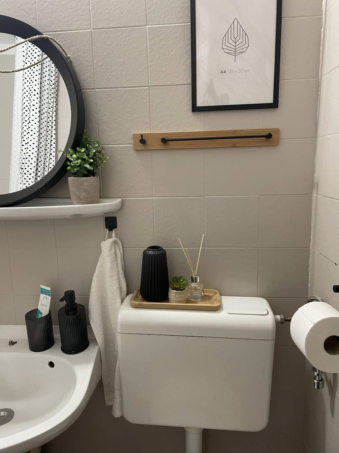 A tenyérnyi fürdőszoba felújítását Renáta maga tervezte és végezte, kreativitásának és kitartásának pedig meg is lett az eredménye: tip-top fürdőszobát varázsolt a hagyományos, megszokott helyiség újragondolásával.