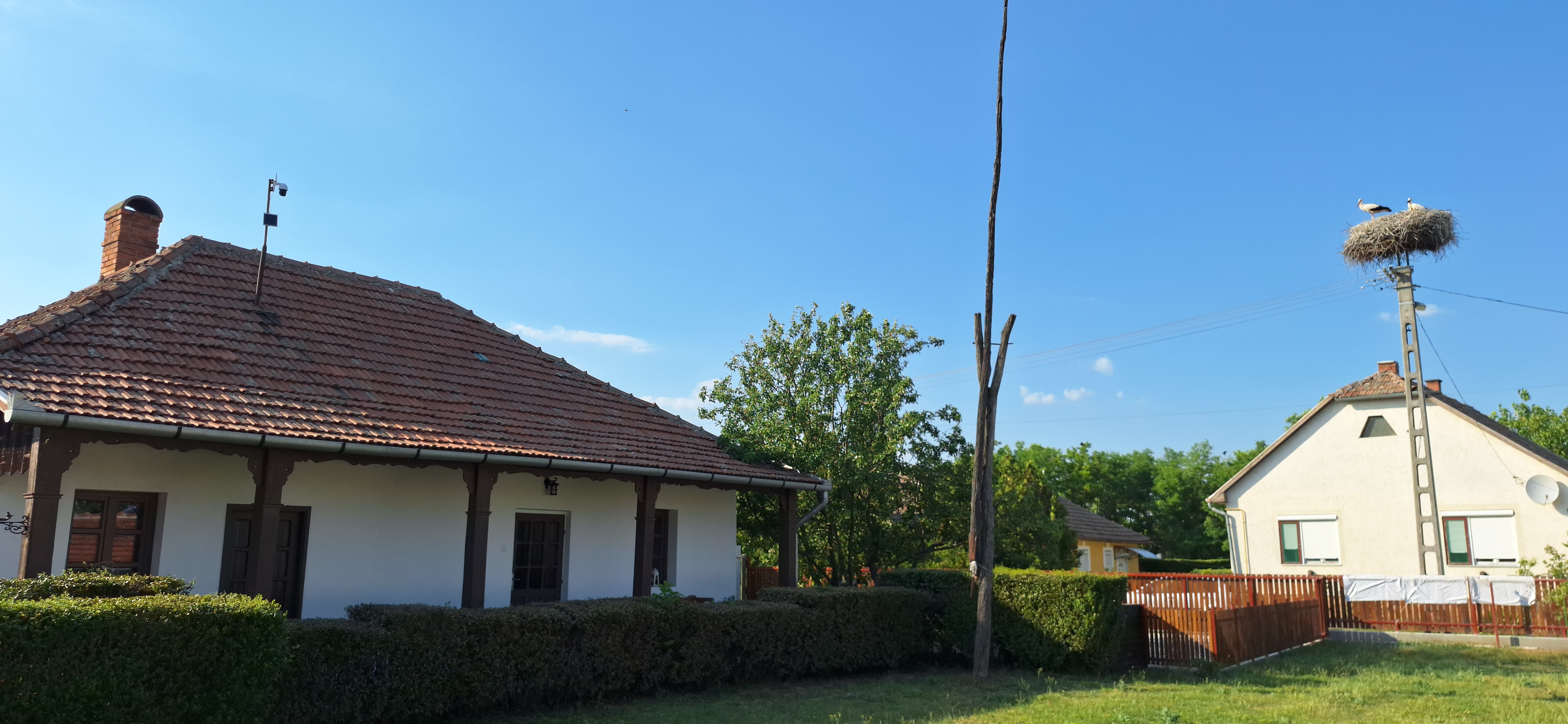 Kelen és Lenke minden évben visszatérnek a fészekre. Tudjuk, hogy ők azok, ismerjük már egymást. Ez lesz a hatodik közös nyarunk, s bár megközelíteni nem lehet egy vad gólyát, mert mindig tisztes távolságot tart, de érdeklődő, sőt, kíváncsi, és pontosan tudja, hogy az udvarunk biztonságos. Minden nyáron a szemünk láttára nevelnek fel egy egész fészekalj fiókát. Tanúi lehetünk a tojásrakás, a kezdeti rendszeres etetés folyamatának, majd annak a pillanatnak, mikor először bukkan fel egy kisfióka kugli-feje. Nem kevés izgalmat és aggodalmat rejt a kora-nyári fészektámadások időszaka. Aztán a fiókák eszeveszett iramban növekedni kezdenek, és mire észbe kapunk, már a szárnyaikat próbálgatják és kirepülnek. Aztán a fészek elcsendesedése következik, amikor a szülők újra kettesben maradnak, majd hipp-hopp, a fészek újra üres lesz ősszel. Ez a legszívszorítóbb az egész évben