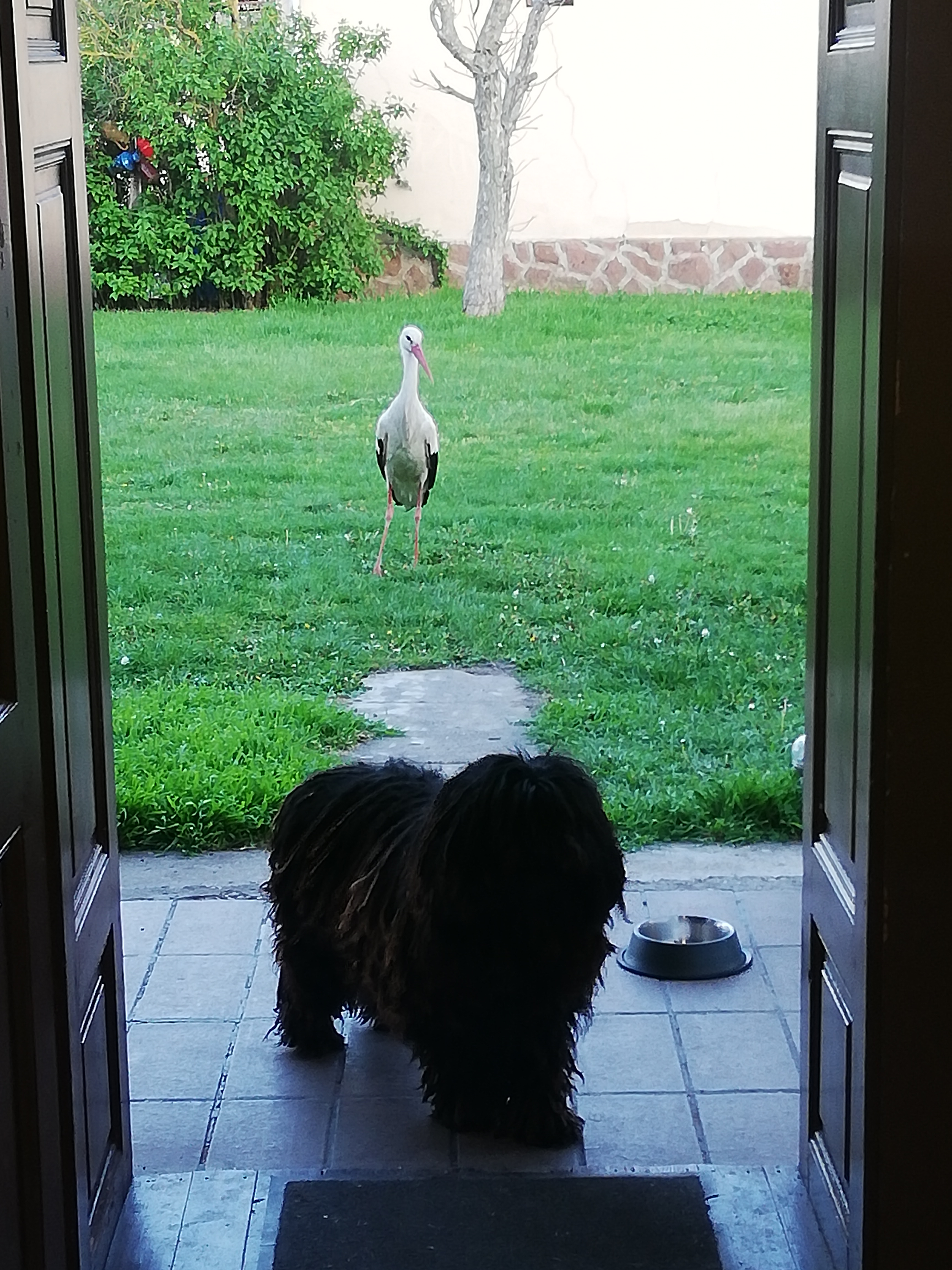 A Porta kis pulikutyája, Cserge is lelkesen részt vesz a gólya-barátságban. Nem bántja őket, vigyáz ülésben feszít, amíg a gólyák a kertben járnak. Ha pedig idegen gólya repül át a légtéren, jó jelzőkutyához méltón fel-le rohangál a kertben, és összetéveszthetetlen ugatással jelez!