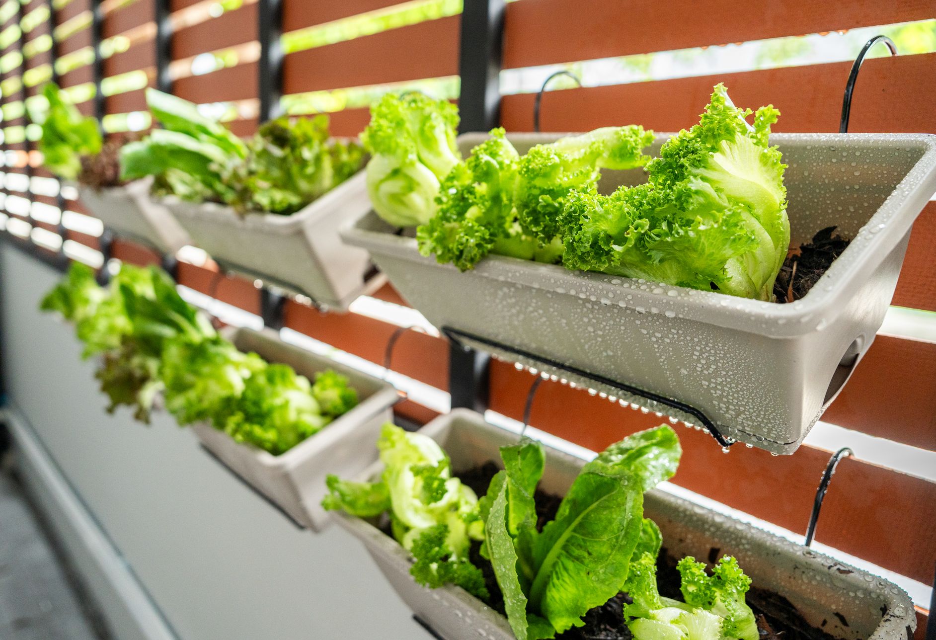A függőleges kertek különösen panelházakban és társasházakban praktikusak, hiszen a falak, korlátok vagy rácsos szerkezetek kihasználásával úgy növelhető a növények száma, hogy közben az erkély alapterülete szabadon marad.