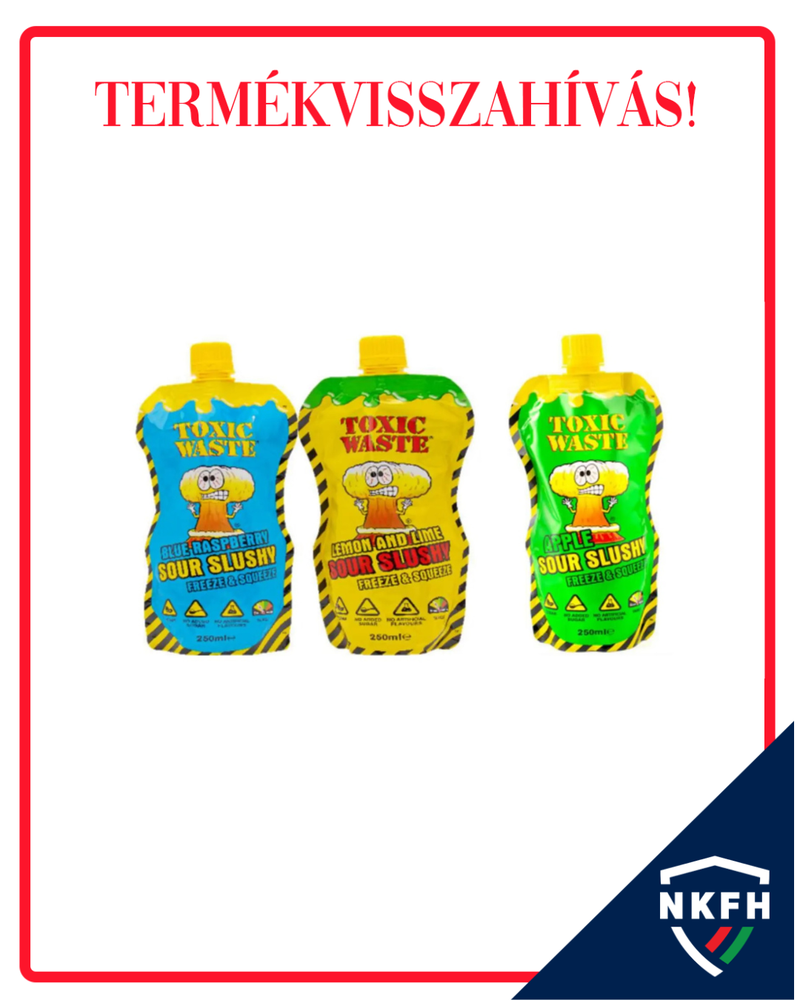 Ezért a hatóság azt kéri, hogy amennyiben valaki vásárolt 250 milliliteres kiszerelésű, Toxic Waste Sour Slushy elnevezésű, kék málna, citrom & lime, vagy alma ízesítésű jégkását, azt ne fogyassza el.