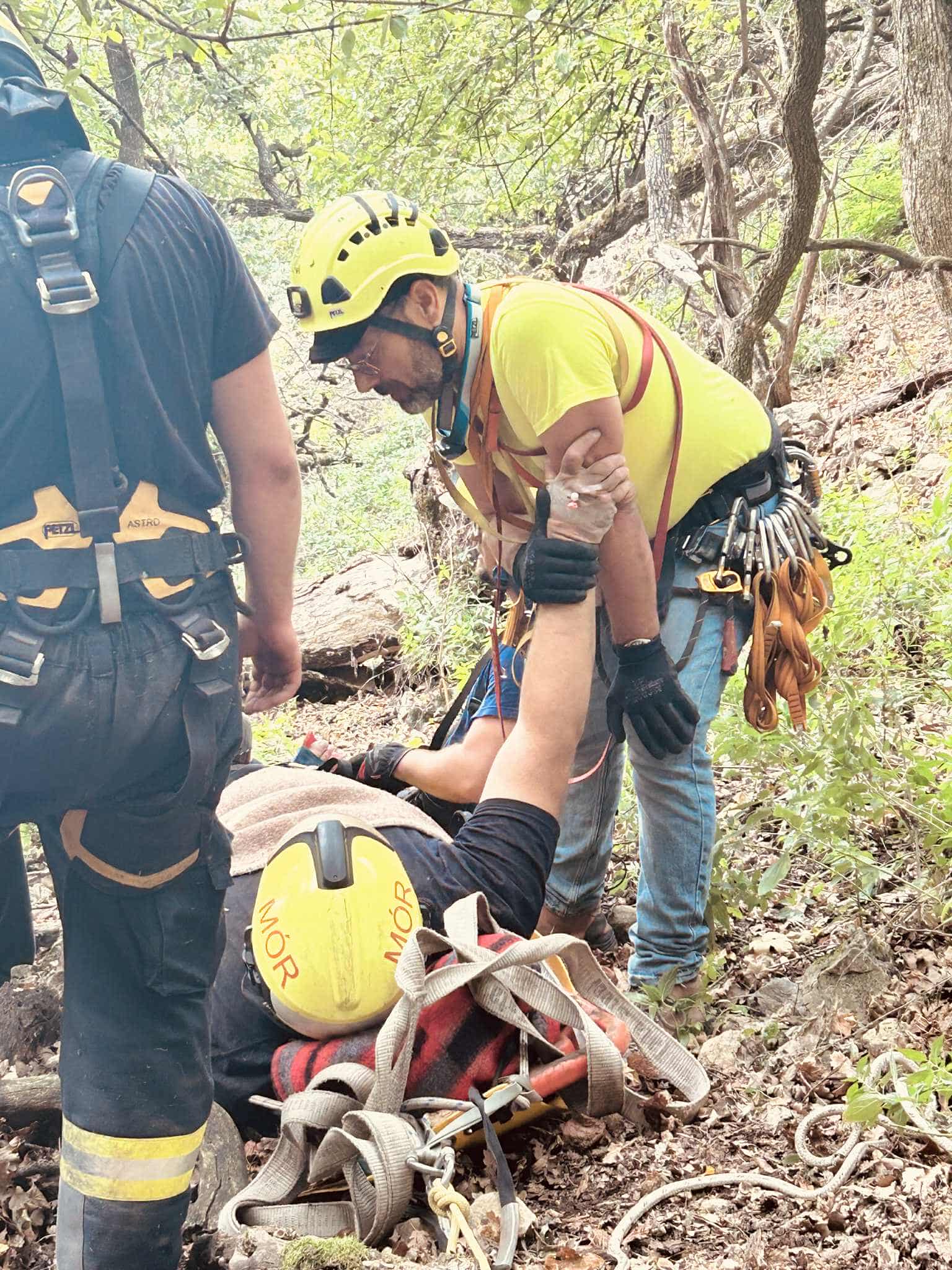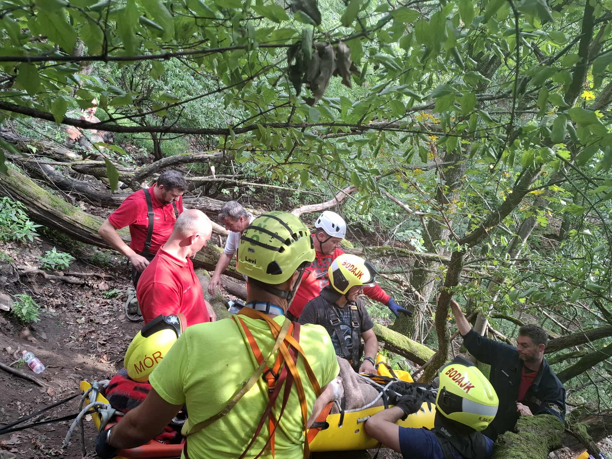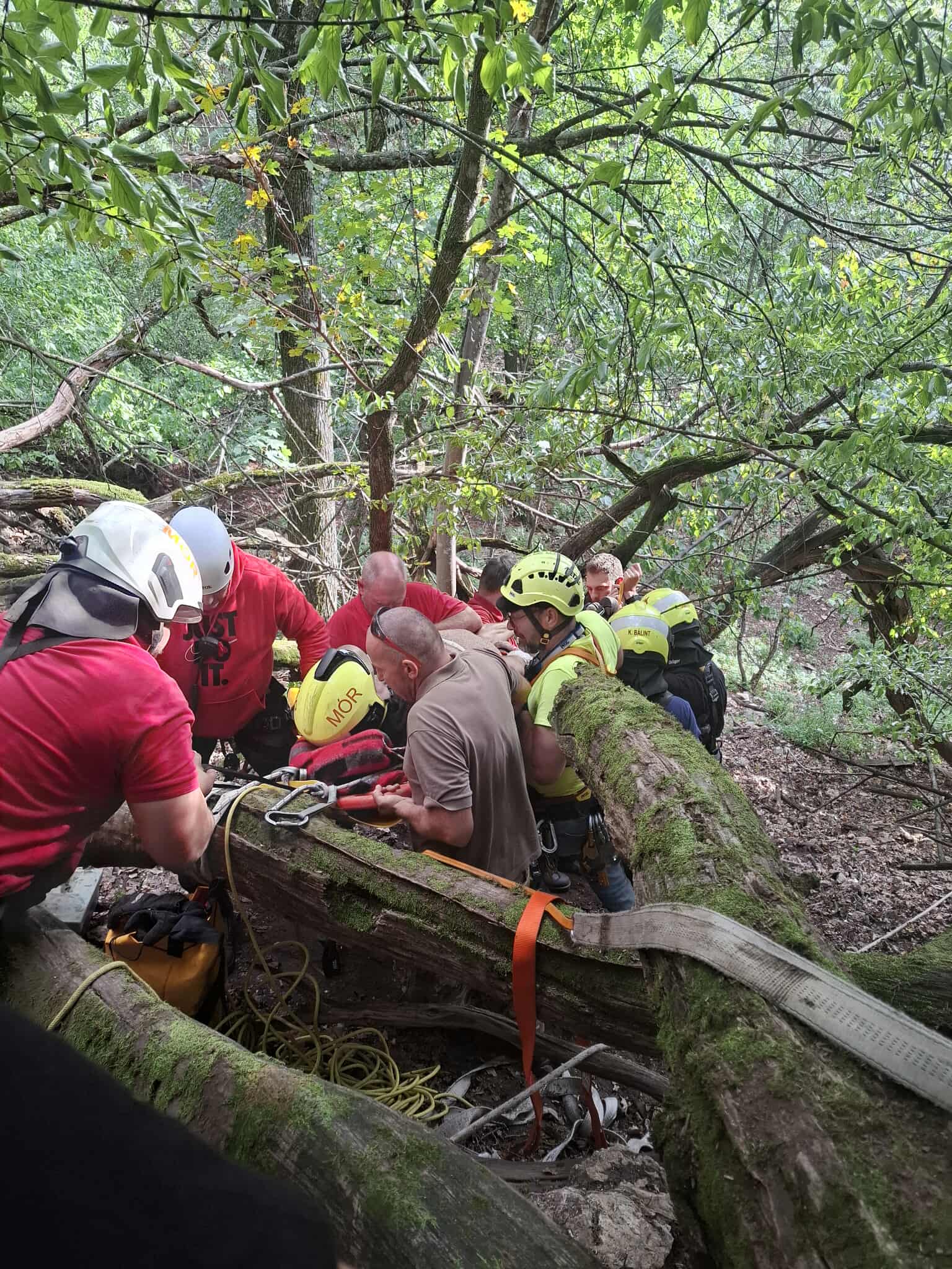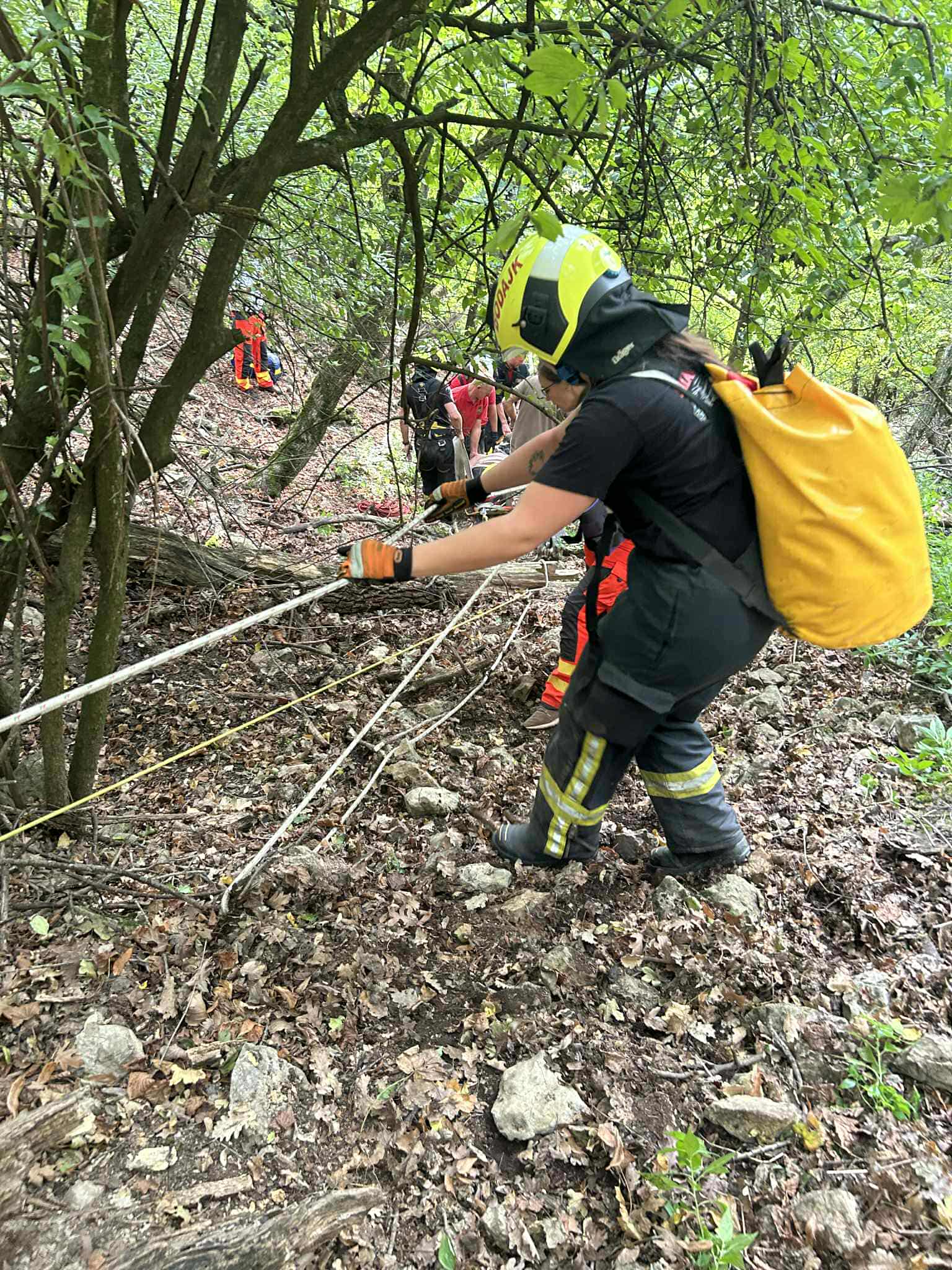 A mentéshez négyszáz méter hosszú kötélpályát épített ki a móri járási mentőcsoport magasból-mélyből mentési csapata, majd speciális eszközökkel, alpintechnikával, a mentőszolgálattal együttműködve ereszkedtek le a sérülttel, akit kórházba szállítottak.