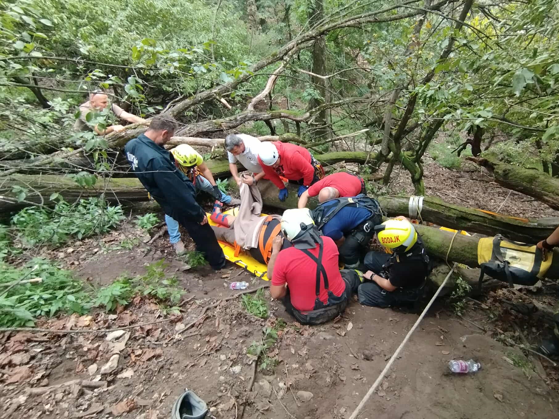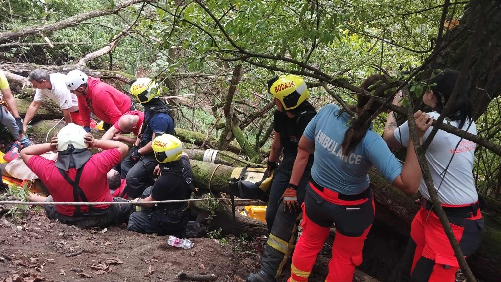 A mentéshez négyszáz méter hosszú kötélpályát épített ki a móri járási mentőcsoport magasból-mélyből mentési csapata, majd speciális eszközökkel, alpintechnikával, a mentőszolgálattal együttműködve ereszkedtek le a sérülttel, akit kórházba szállítottak.
