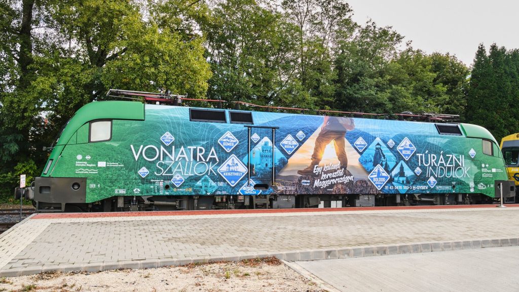 A soproni székhelyű vasúttársaság egy 470-es Siemens villanymozdonyt és egy dízel Jenbacher motorvonatot öltöztetett új „ruhába”. Az oldalmatricákon kéktúra-pecsétek, bakancsos turisták és ikonikus magyar tájak tűnnek fel – mindazok a látványosságok, amiket az országot átszelő Kéktúra útvonala érint.