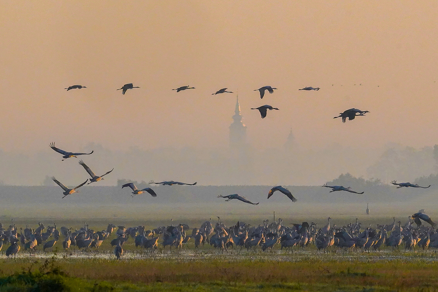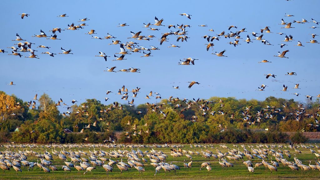 A Magyarországon átvonuló darvak 95%-a a Hortobágyon vonul át és hónapokat töltenek el itt.