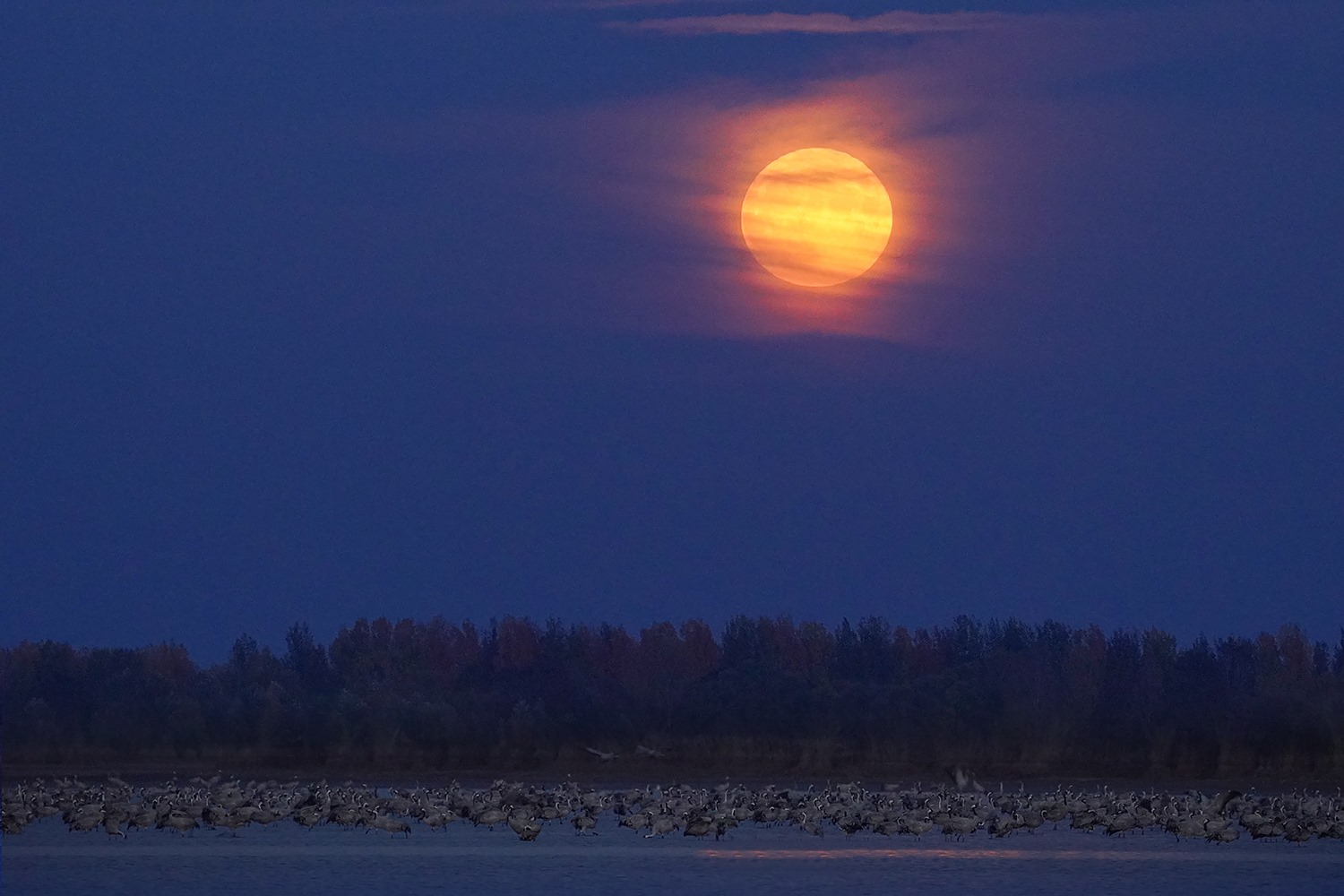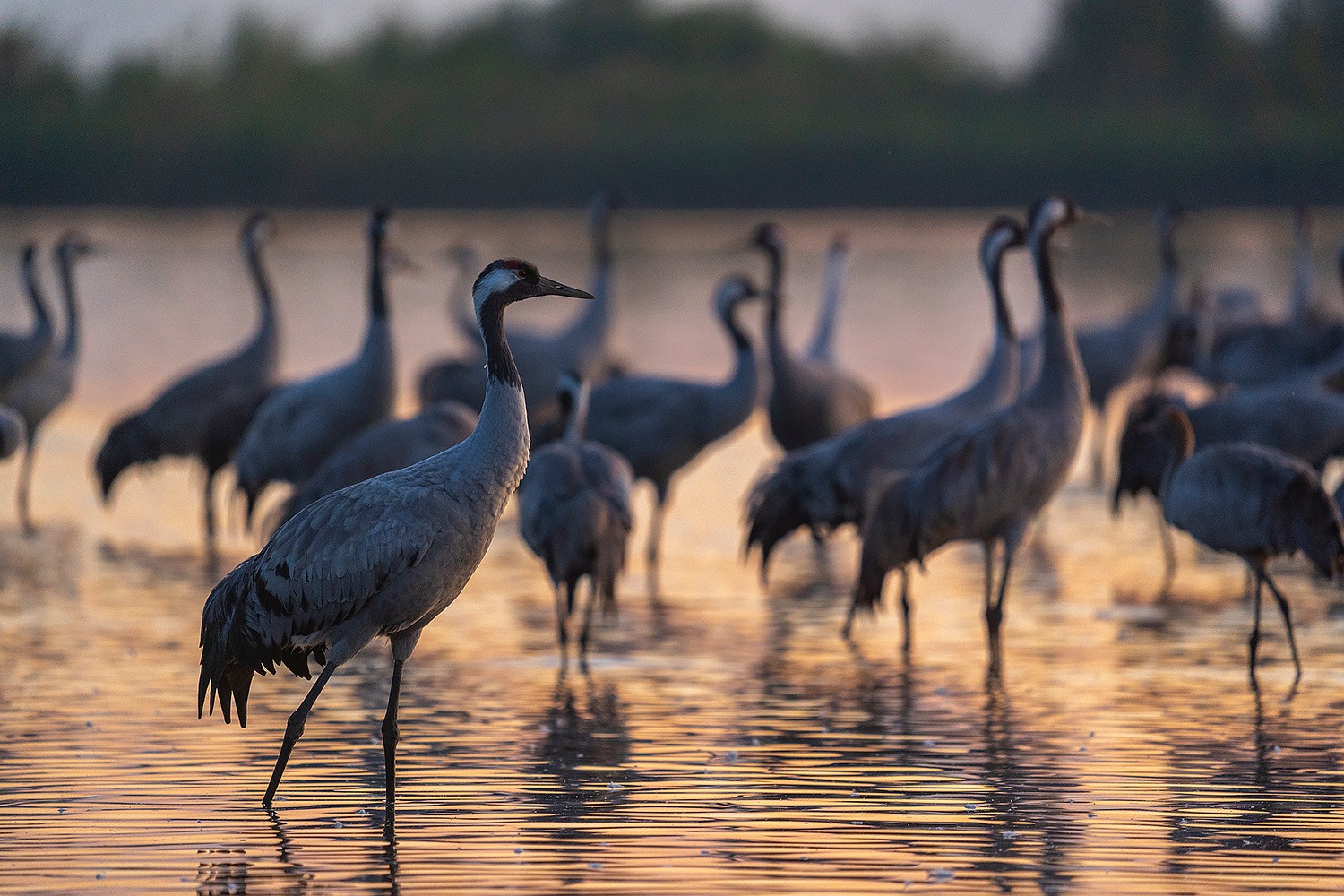 Idén az első adatok szerint szeptember 5-én 4405 daru éjszakázott a Hortobágyon, a legutóbbi, október 16-i számláláskor már 153 165 példány.