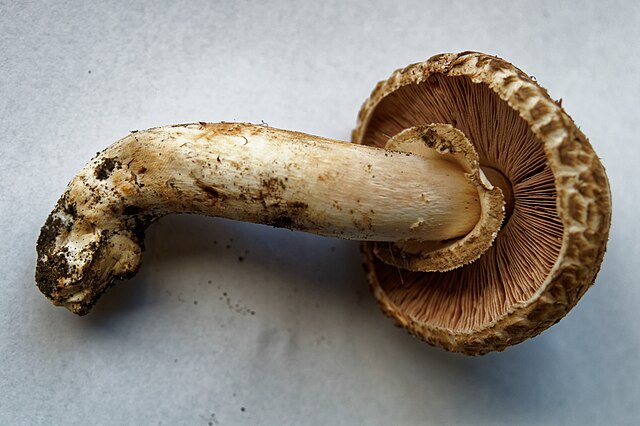 - Tönk: lefelé orsósan elvékonyodó, kettősperemű, de gyenge gallér, számos pikkelykés öv van.