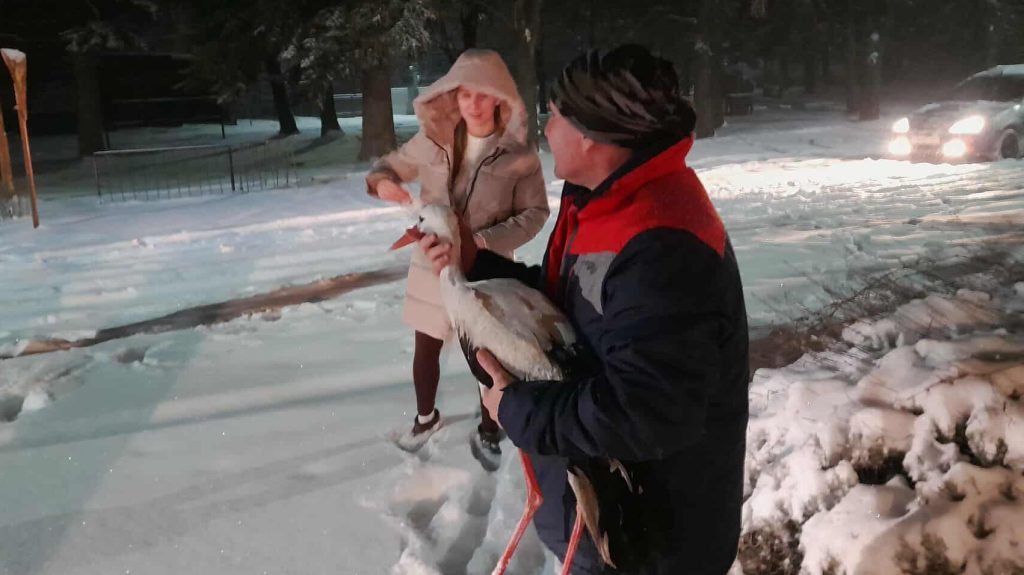 Legyengült gólyát találtak január 6-án az út szélén a szlovákiai, Komáromi járásban található Marcelháza területén. A madár mozdulatlanul állt a sűrű hóesésben, miközben több jármű is elhaladt mellette. Végül egy arra közlekedő család megállt, felismerte a helyzet súlyosságát, és segítséget kért, így a gólya még időben biztonságba kerülhetett, írta meg a parameter.sk.