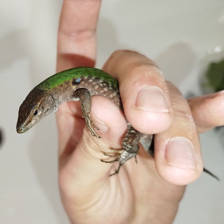 Az egyed átvételekor vált egyértelművé, hogy egy Magyarországon nem honos faj, egy olasz fali gyík (Podarcis siculus) került kézre.