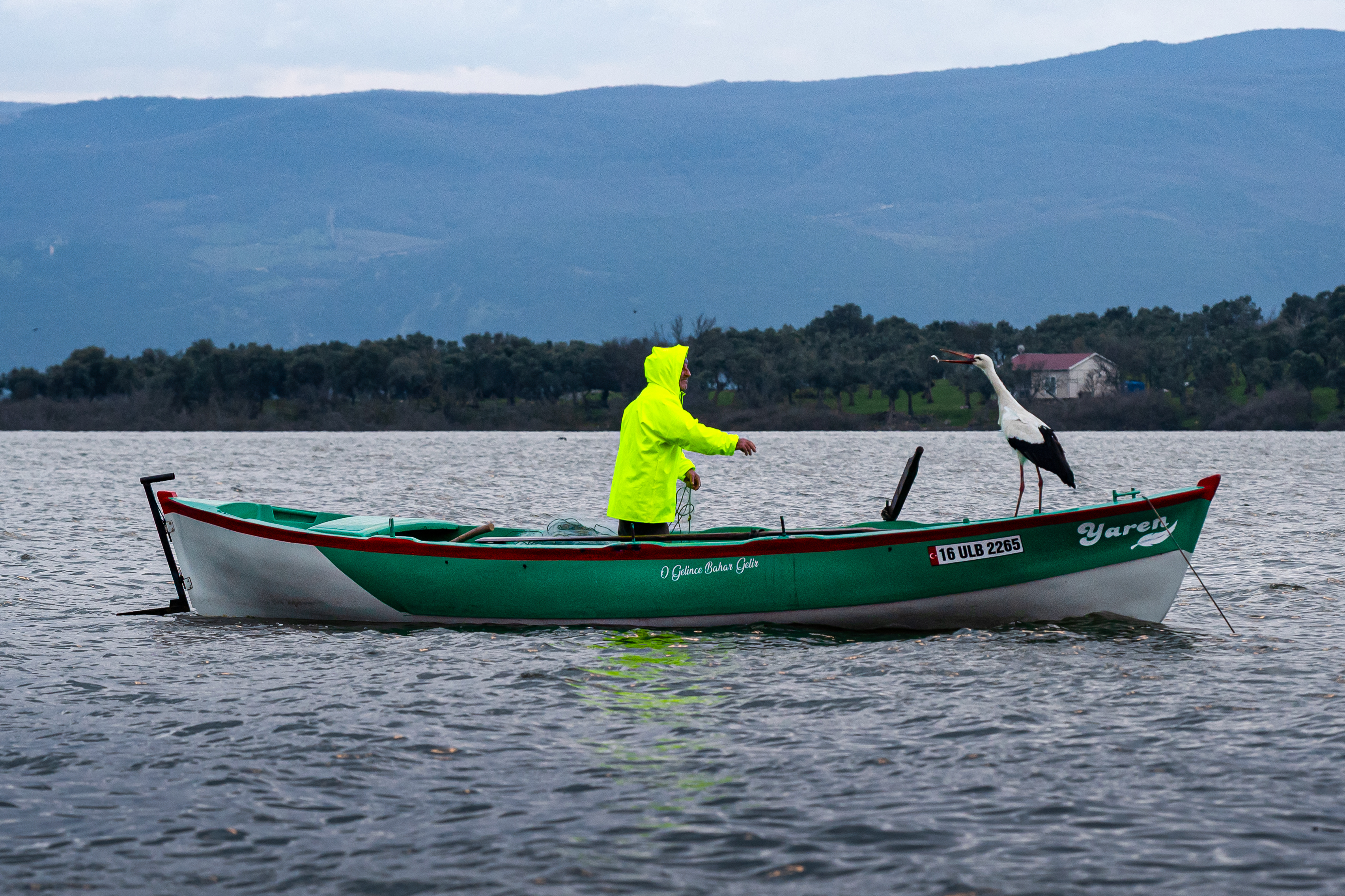 Yaren idén tavasszal már 15. alkalommal tért vissza afrikai teleléséből az Eskikaraağac faluban található fészkére, hogy utána tiszteletét tegye a 70 éves Yilmaz csónakjában.