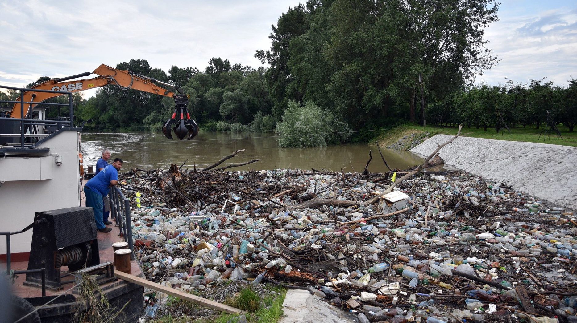 Mázsaszám érkezik az országba a szemét Romániából a Szamosban Uszálysorral terelik ki a hajókikötőbe a szemetet, és ott markolókkal rakják pótkocsikra. Sokszínű Vidék 2020. 06. 26. 12:17 tisza