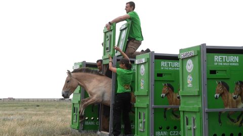 Négy vadló érkezett Magyarországról az Altyn Dala rezervátumba.