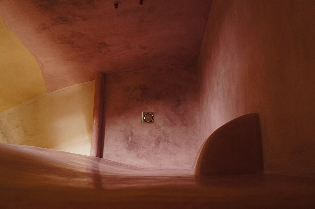 A tadelakt nem csupán egy vakolatfajta – sokkal inkább egy ősi, kézzel formált mesterség. Ez a fényesre polírozott, vízálló felület évszázadok óta díszíti Marokkó fürdőit, palotáit, szökőkútjait. Neve is beszédes: a berber tadlika szó azt jelenti, „dörzsölni, simogatni” – utalva a hagyományos elkészítési módra, melyben a vakolatot kézi polírozással, természetes szappannal és féldrágakővel tömörítik, hogy ellenálljon a víznek és az időnek.