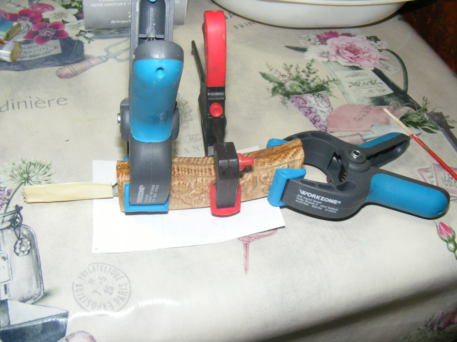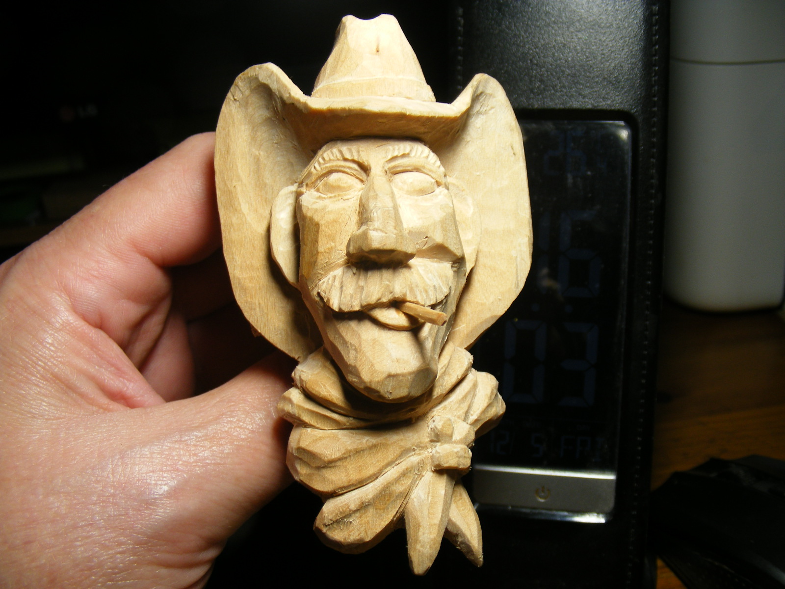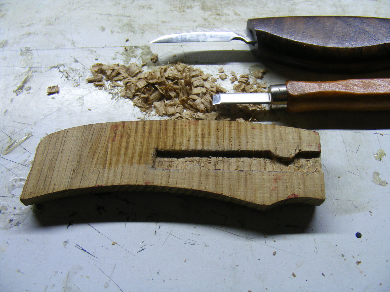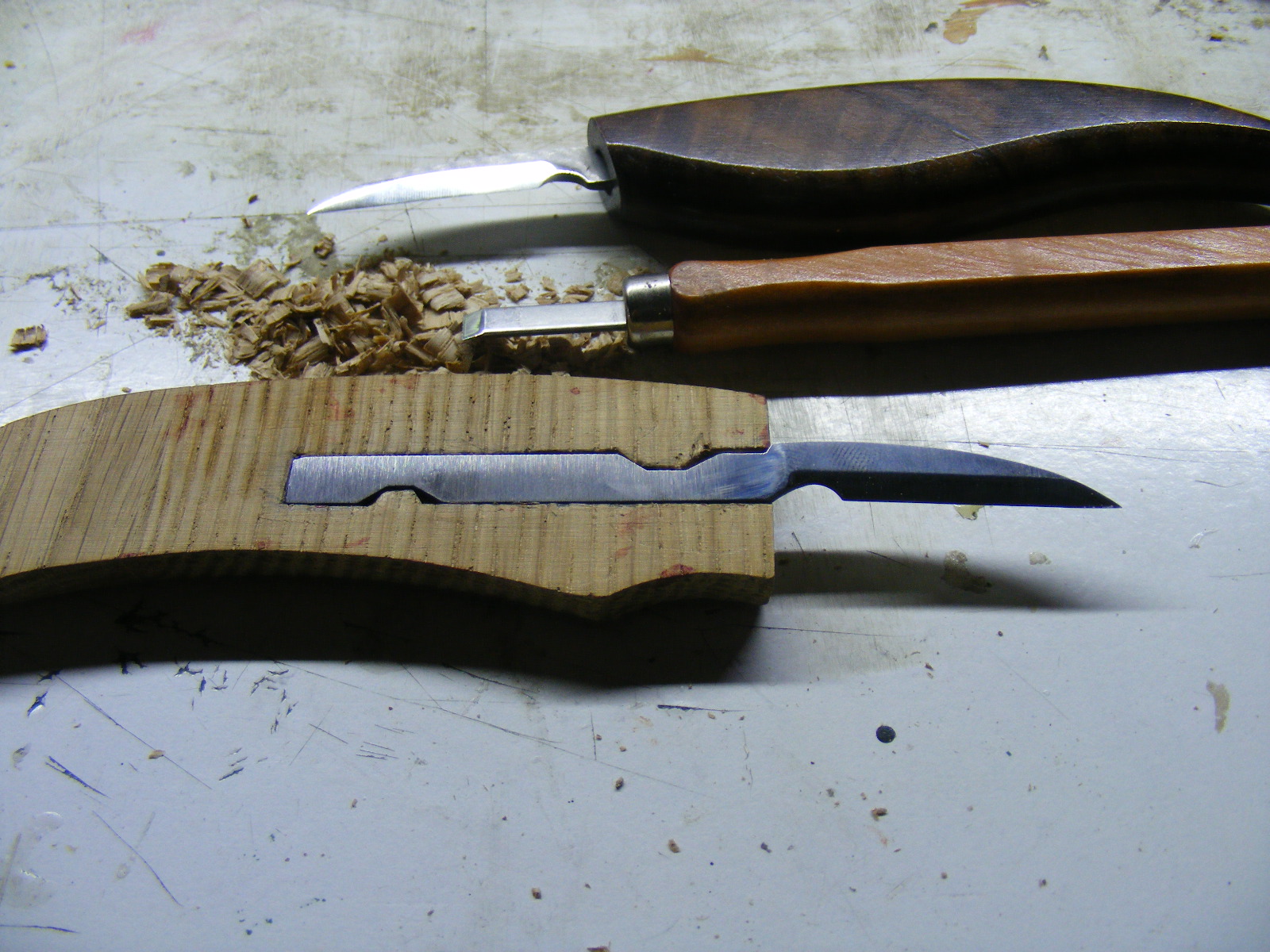 A legelső faragásokat még tapétavágóval, sniccerrel végeztem, de ehhez ez az eszköz finoman szólva sem megfelelő, nem túl erős a pengéje, hajlik, a nyél a kezet is vágja, de az első manómat csak sikerült elkészítenem vele fenyőfából