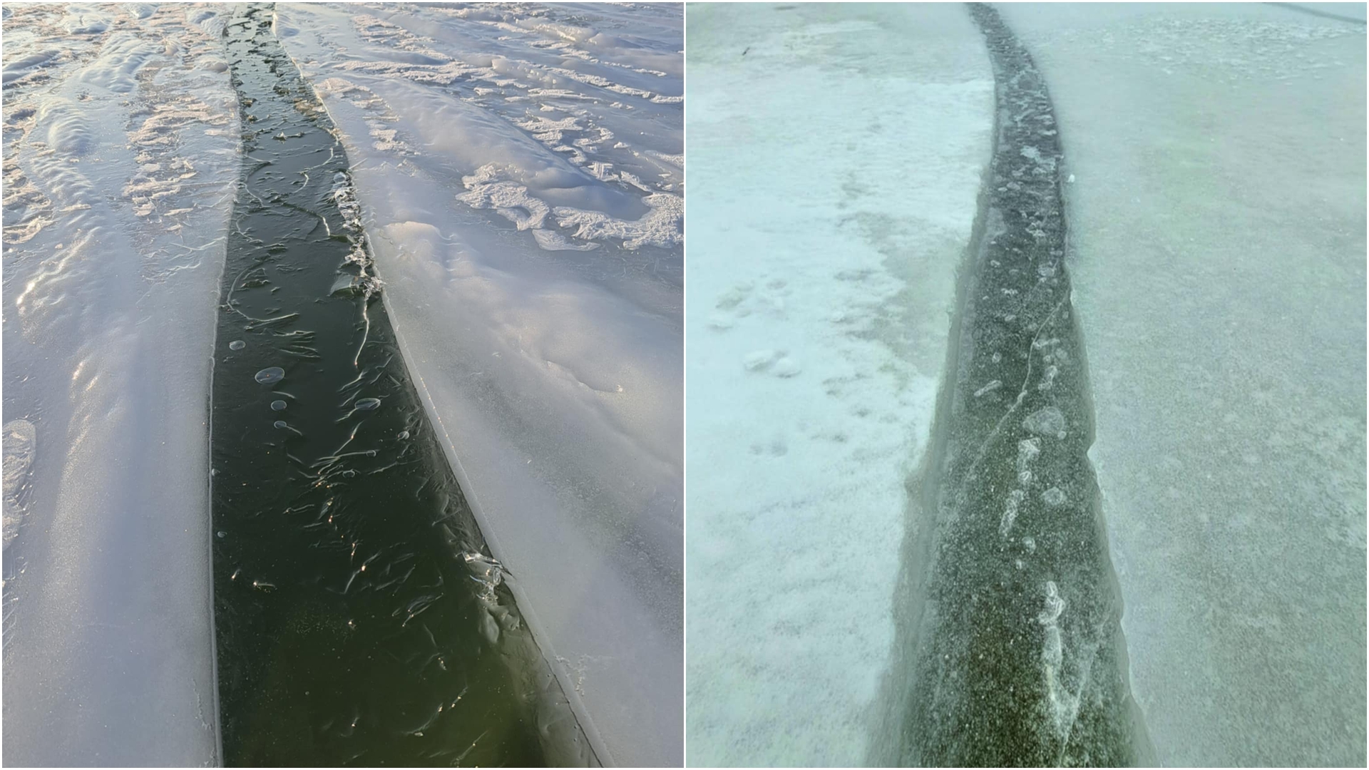 Ezek a repedések kezdetben keskenyek, de gyorsan kiszélesedhetnek, a befagyott rianások friss jege pedig nehezen észrevehető és különösen veszélyes.