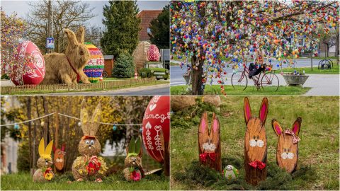 Az óriások mellett sok ezer húsvéti tojás és figura díszíti a teret.