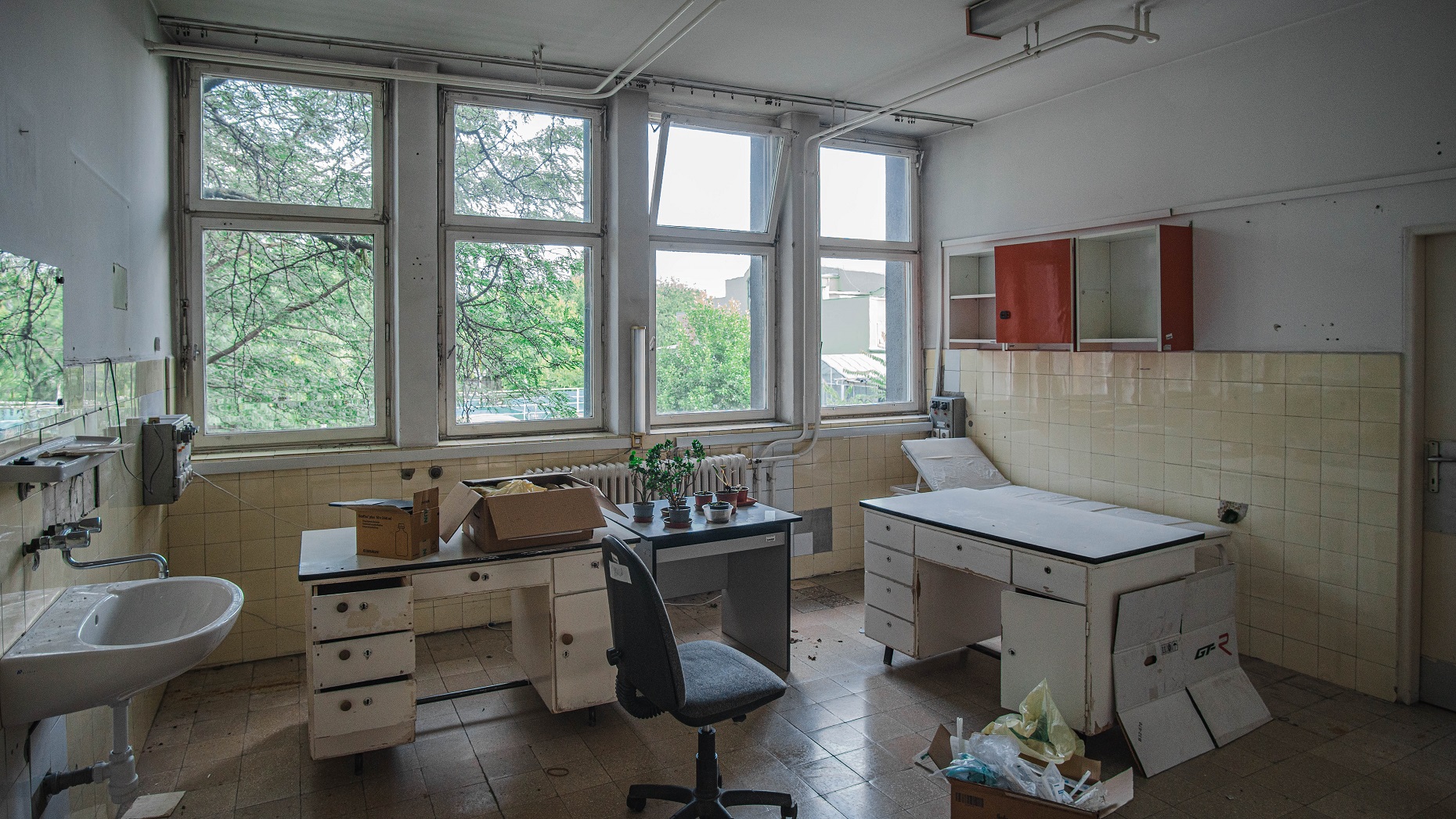 Az egykori egészségház bezárás után. Az épület állapota leromlott, átköltözött egy modernebbe. Később a hajléktalanok teljesen szétszedték az épületet, belakták. Ma lezárva várja a további sorsát, írta közösségi oldalán a Magyarország elhagyottan – BCO urbex.