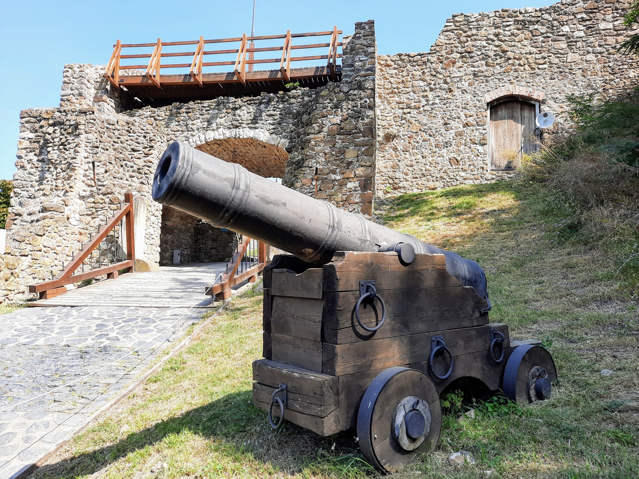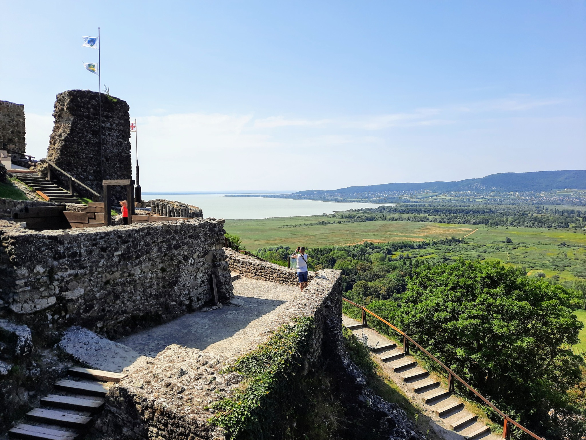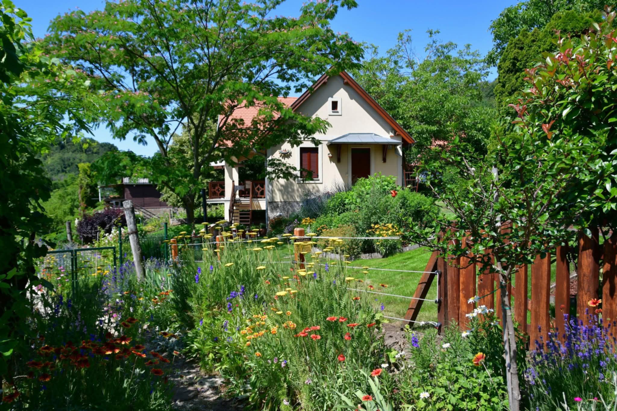 A vár oldalán szőlőskertek futnak, tavasszal pedig virágba borulnak a gyümölcsösök.