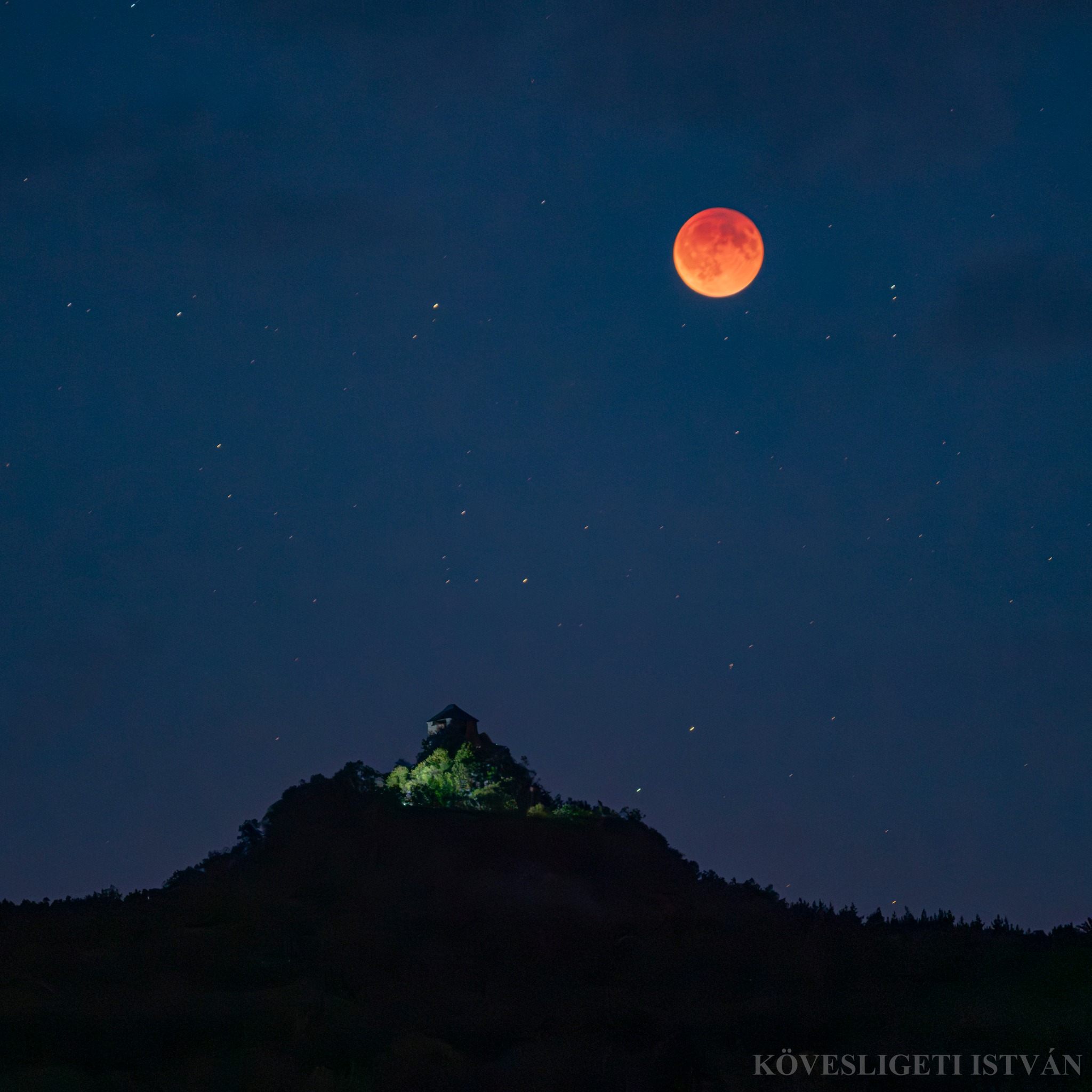 Kövesligeti István Somoskőújfaluból fotózta le a Holdat a Salgói vár fölött