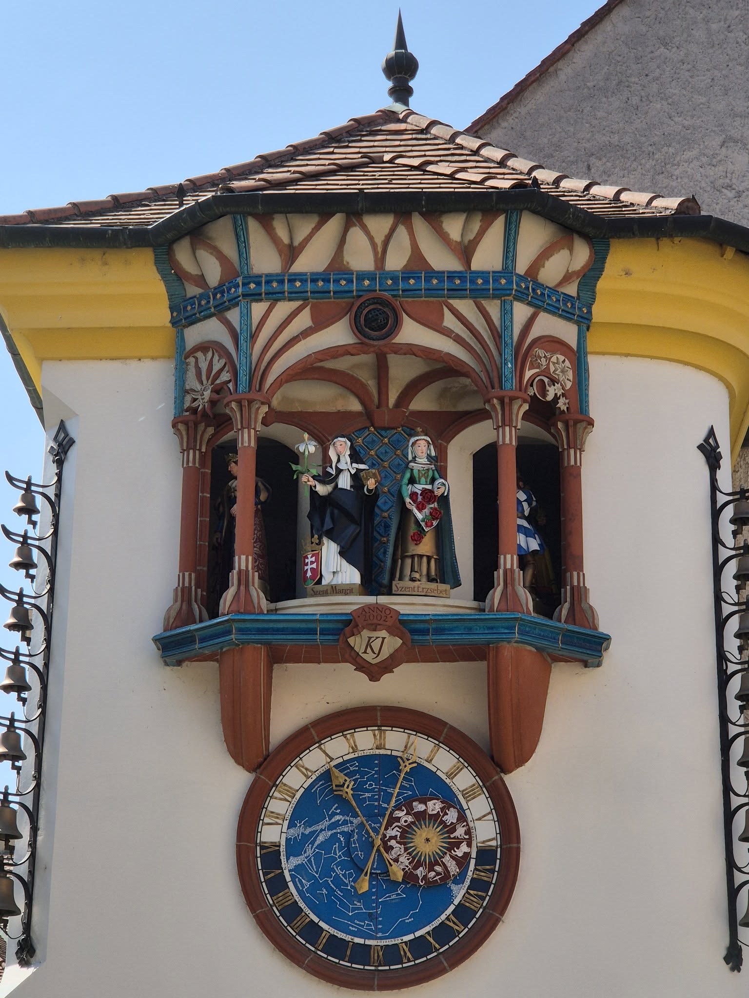 Az óra kuriózuma nem csak a kinézetében rejlik. Azon túl, hogy mutatja az időt, a hónapot, a napszakokat és a csillagjegyeket, naponta ötször látványos műsorral is szolgál. Délelőtt 10 órától két óránként, 12, 14, 16 és 18 órakor zenei aláfestéssel apró figurák kelnek életre, és vonulnak végig a közönség előtt.