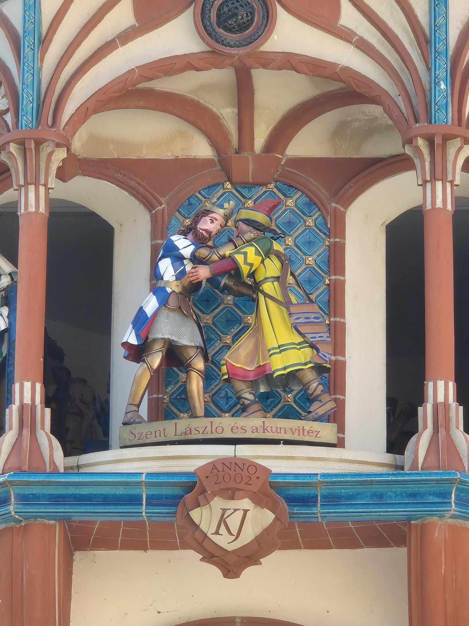 A figurák a 15. századi Thuróczy-krónika színezett fametszetei, valamint templomi freskók alapján készültek.
