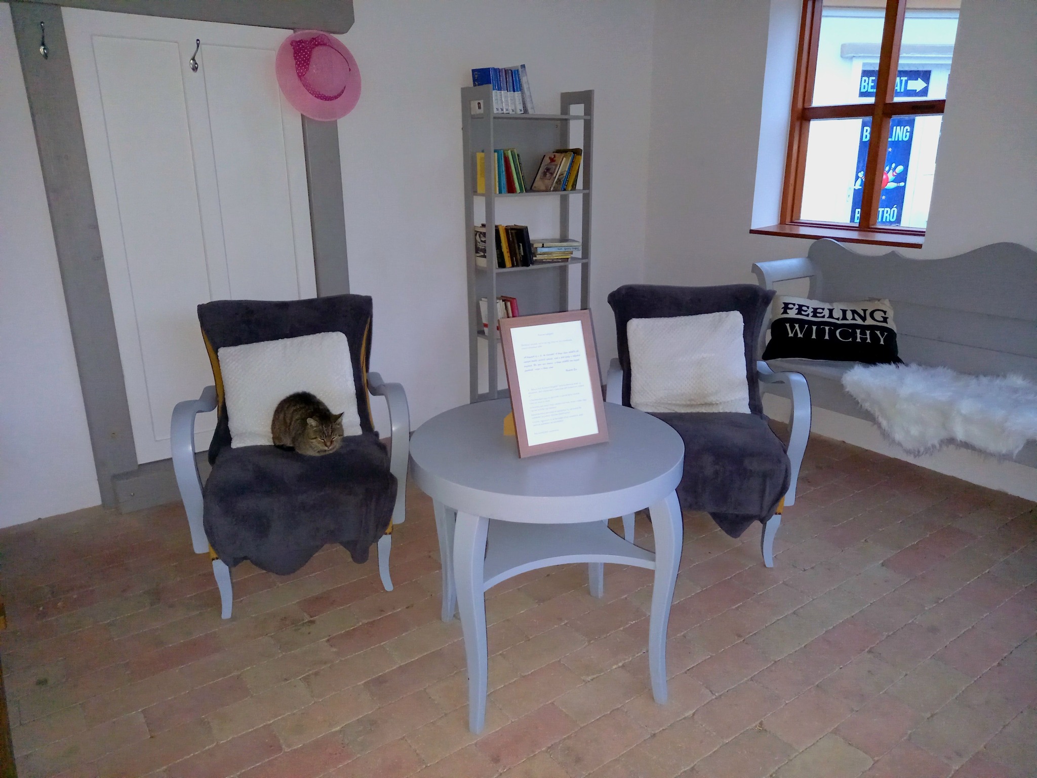 Az ötletgazda különböző régiségvásárokon szerezte be a berendezési tárgyakat, volt, amit ajándékba kapott, ezeket újította fel, csinosította ki. A padra, a fotelekre takaró és párna is került, az asztalon egy keretbe foglalt szöveg invitálja a buszra várakozókat, hogy üljenek bátran a fotelekbe, vegyenek le könyveket a szekrény polcáról, és olvassanak. Magukkal is vihetnek egy-egy kötetet, írta meg a veol.hu.