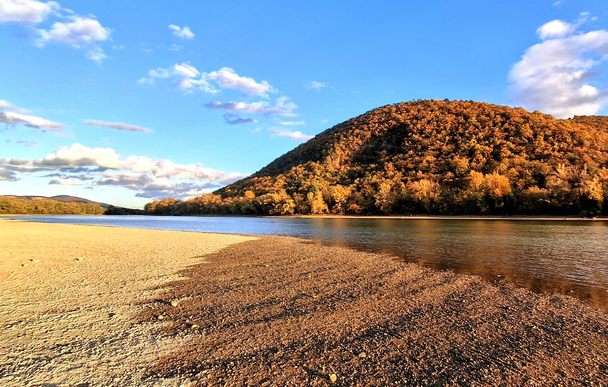 A Dunakanyar, de lehet, hogy az egész ország legszebb folyópartja a Kisoroszi Szigetcsúcs, ahol magas hegyek között gyalogolhatunk be hosszan a Dunába, miközben a távolban a visegrádi várat is megcsodálhatjuk. Minden évszakban gyönyörű ez a hely, de most ősszel csodálatos fényjátékok között készültek fotók.