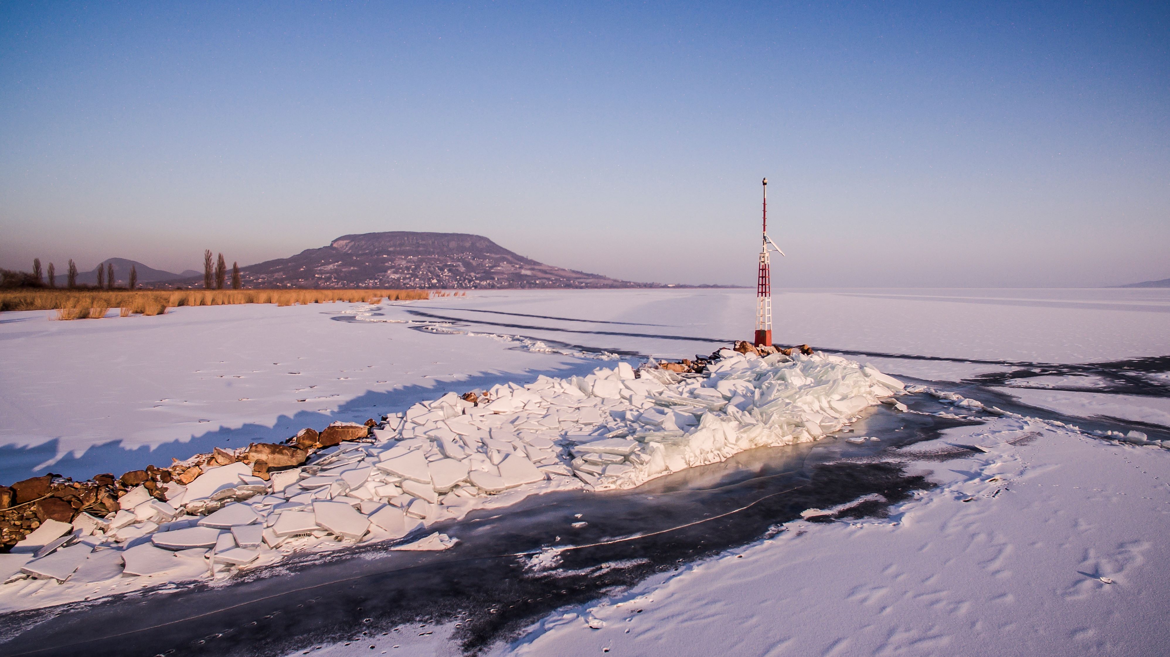 A téli hónapok képeivel mindig bajban vagyok, mivel rég láttunk havat, jeget. Éppen ezért a januári képhez egészen 2017 januárig kellett visszanyúlnom. Ezt még a legeleső drónommal készítettem a szigligeti kikötő bejárata előtt
