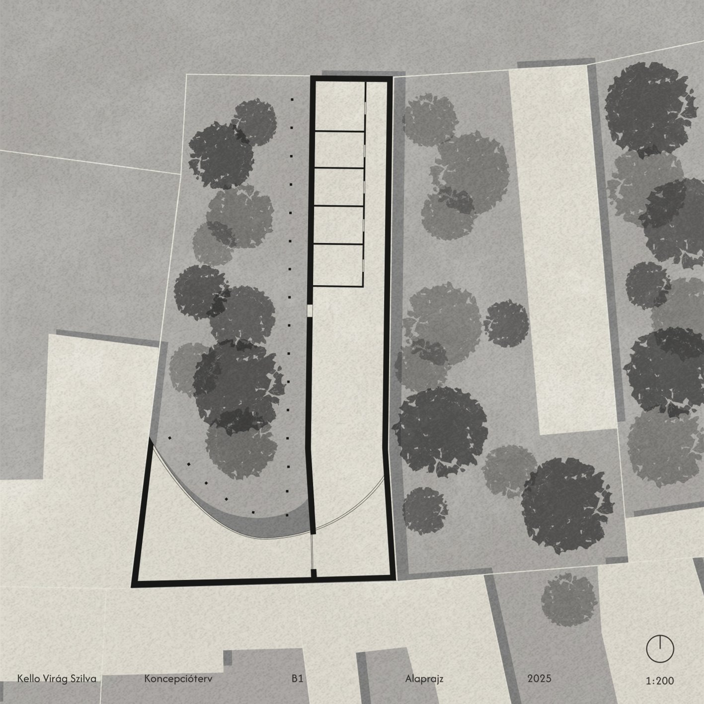 A zsellérközök Gyöngyös egyik legérdekesebb építészeti elemei, nagy örömmel tölt el, hogy ezzel a területtel kell dolgoznunk a félév során. A projekt fő témája az, hogy egy minimum 4 fős lakóházat kell terveznünk egy üres telekre. Az enyémben egy rajztanár anyuka, egy festő apuka és két tinédzser gyermekük él. A ház lakóiról szabadon dönthettünk