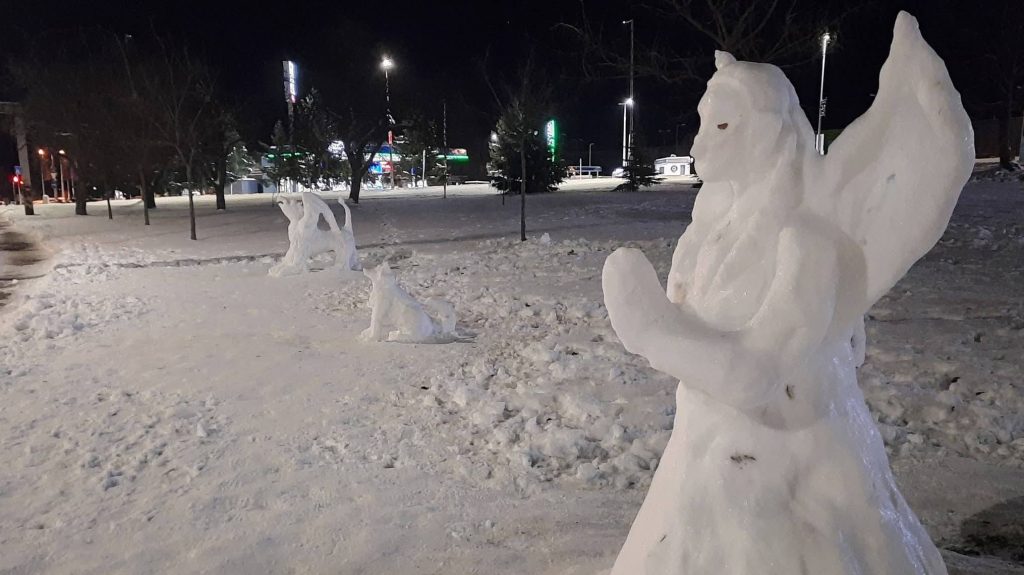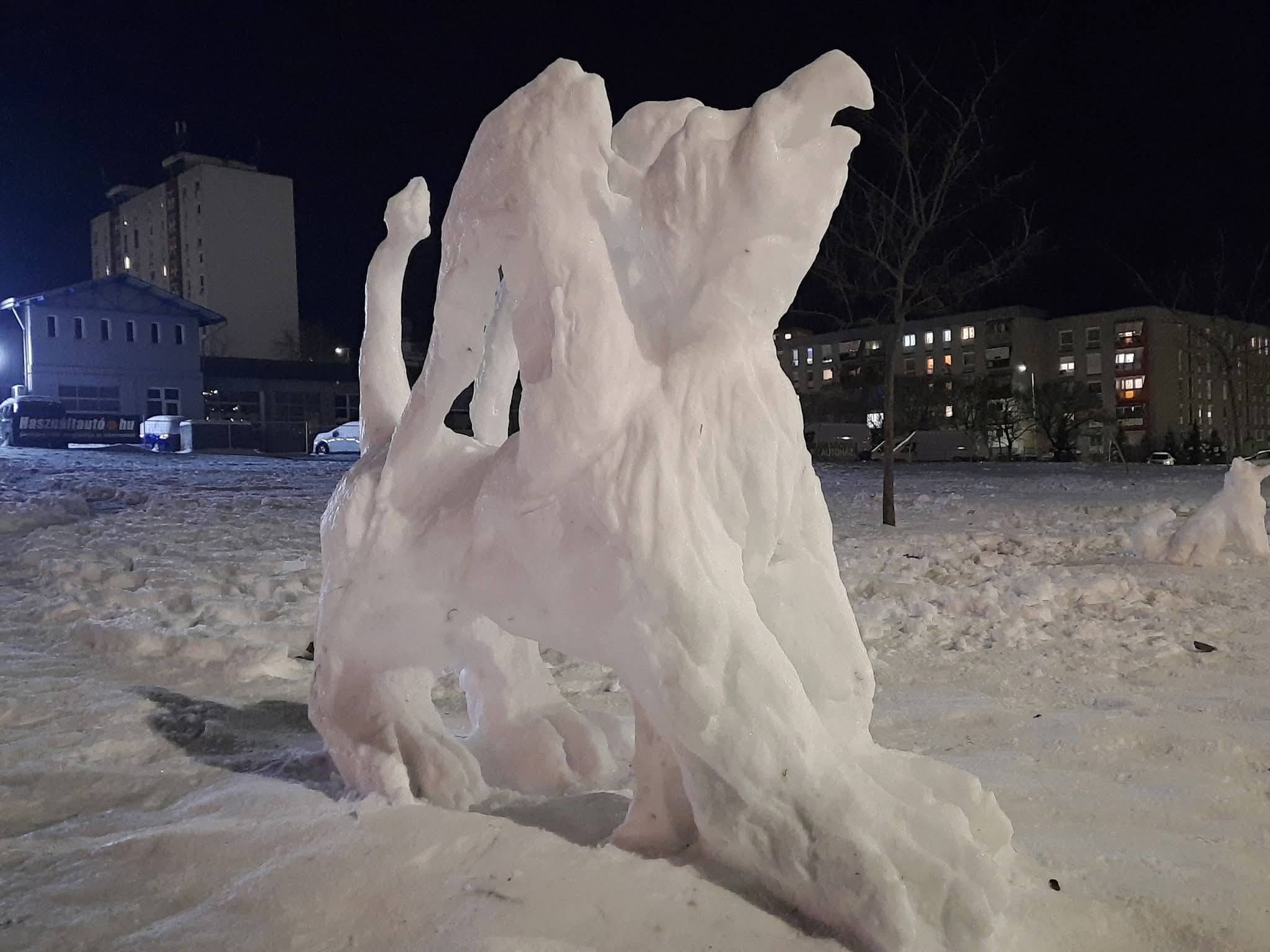 A klasszikus hóember figura mellett több igazán bámulatos hószobor alkotás is született. Györkő Zsombornak hála most mi is megcsodálhatjuk a Pécs kertvárosában született hószobrokat.