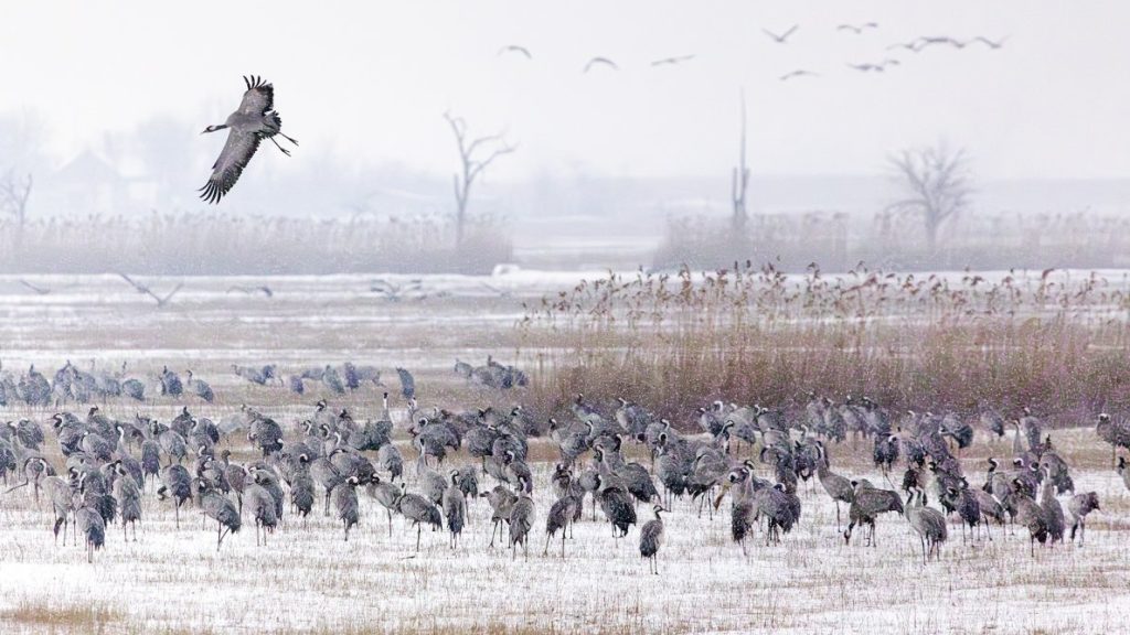 Kemény fagyban is kitartanak a darvak Kardoskúton