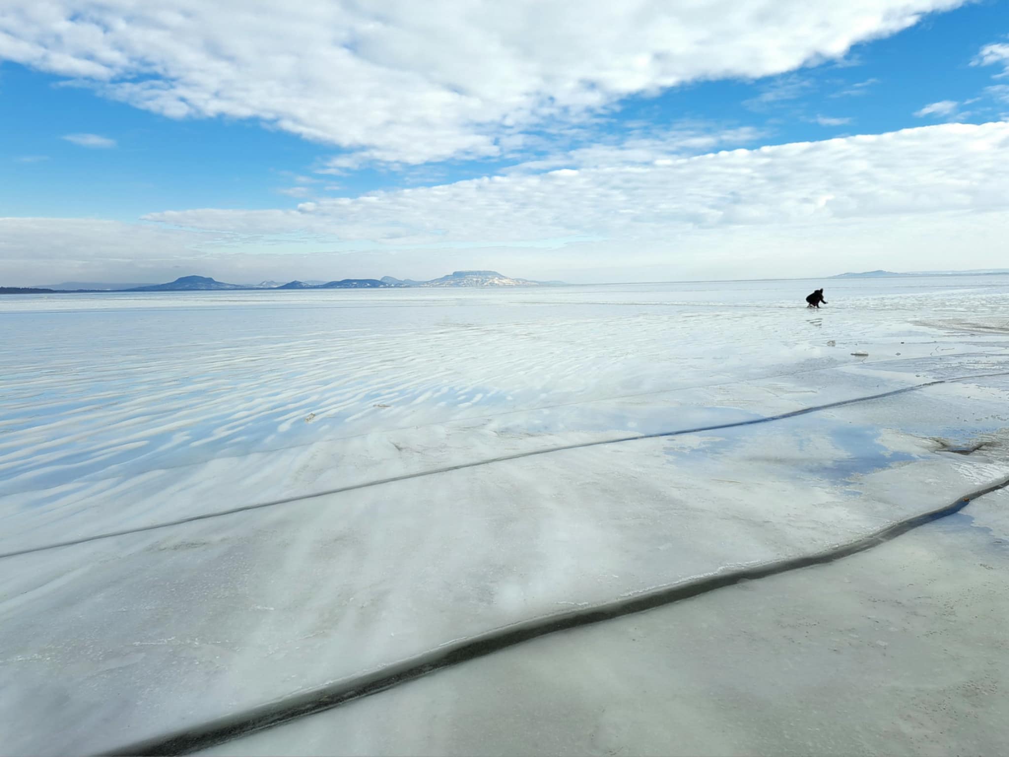 Mint arról portálunkon beszámoltunk, nem mindennapi látványra ébredtek 2025. január 12-án hétfőn Balatonfenyvesen: hosszú, egyenes repedések futottak végig a befagyott Balaton jegén.