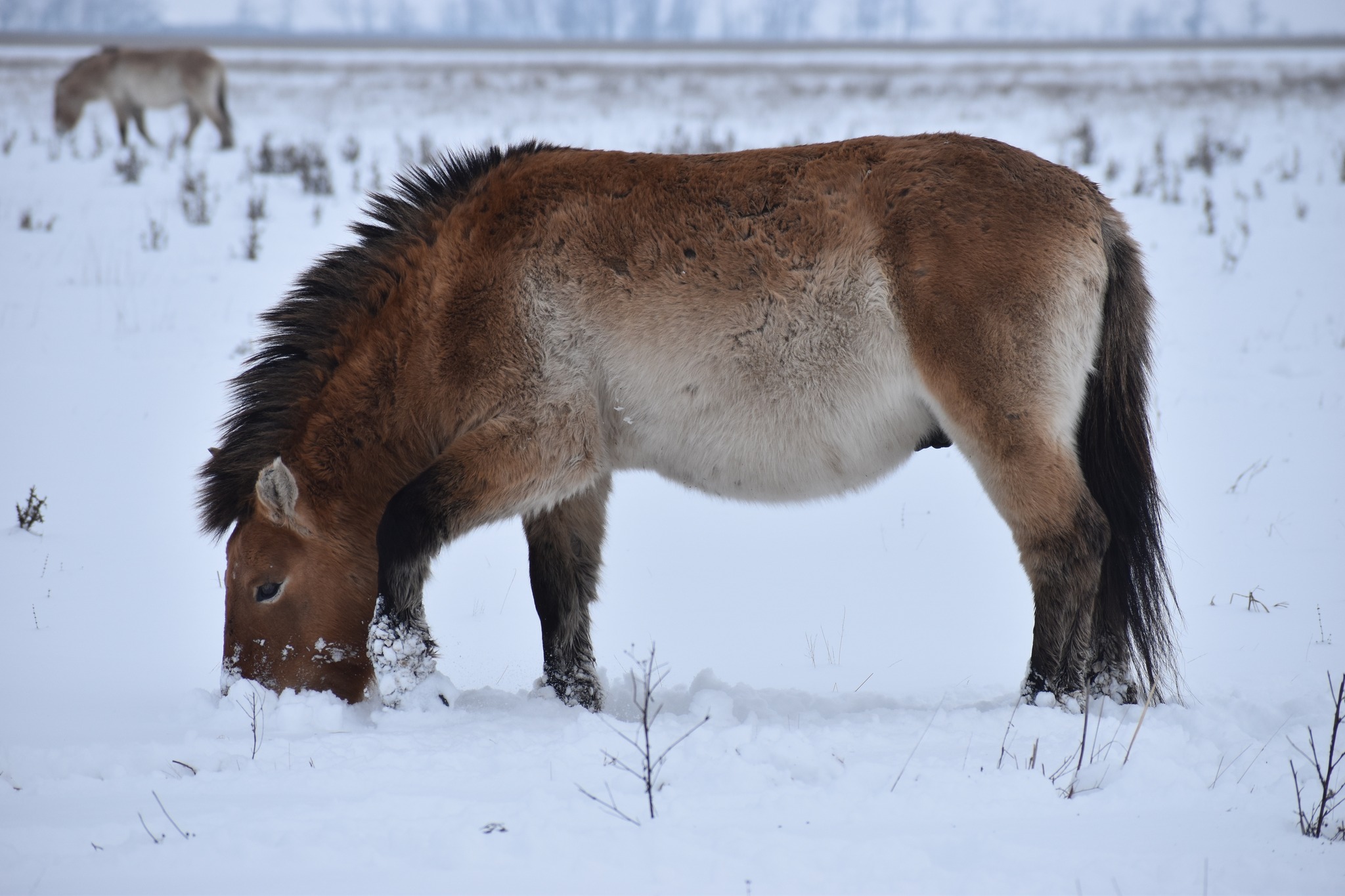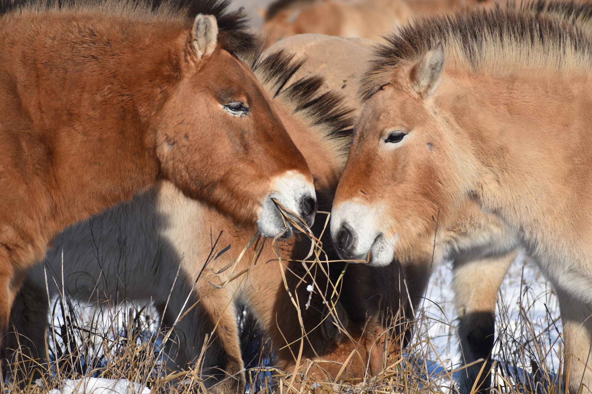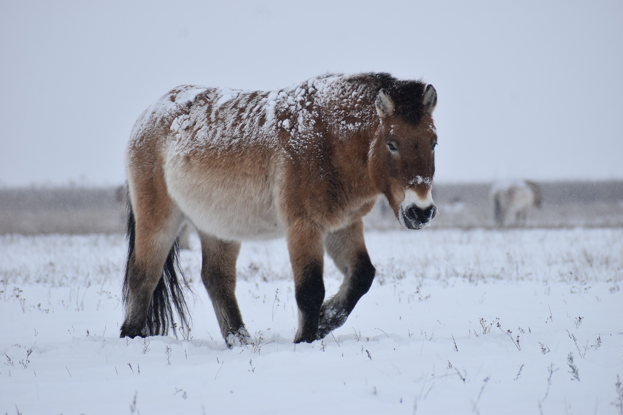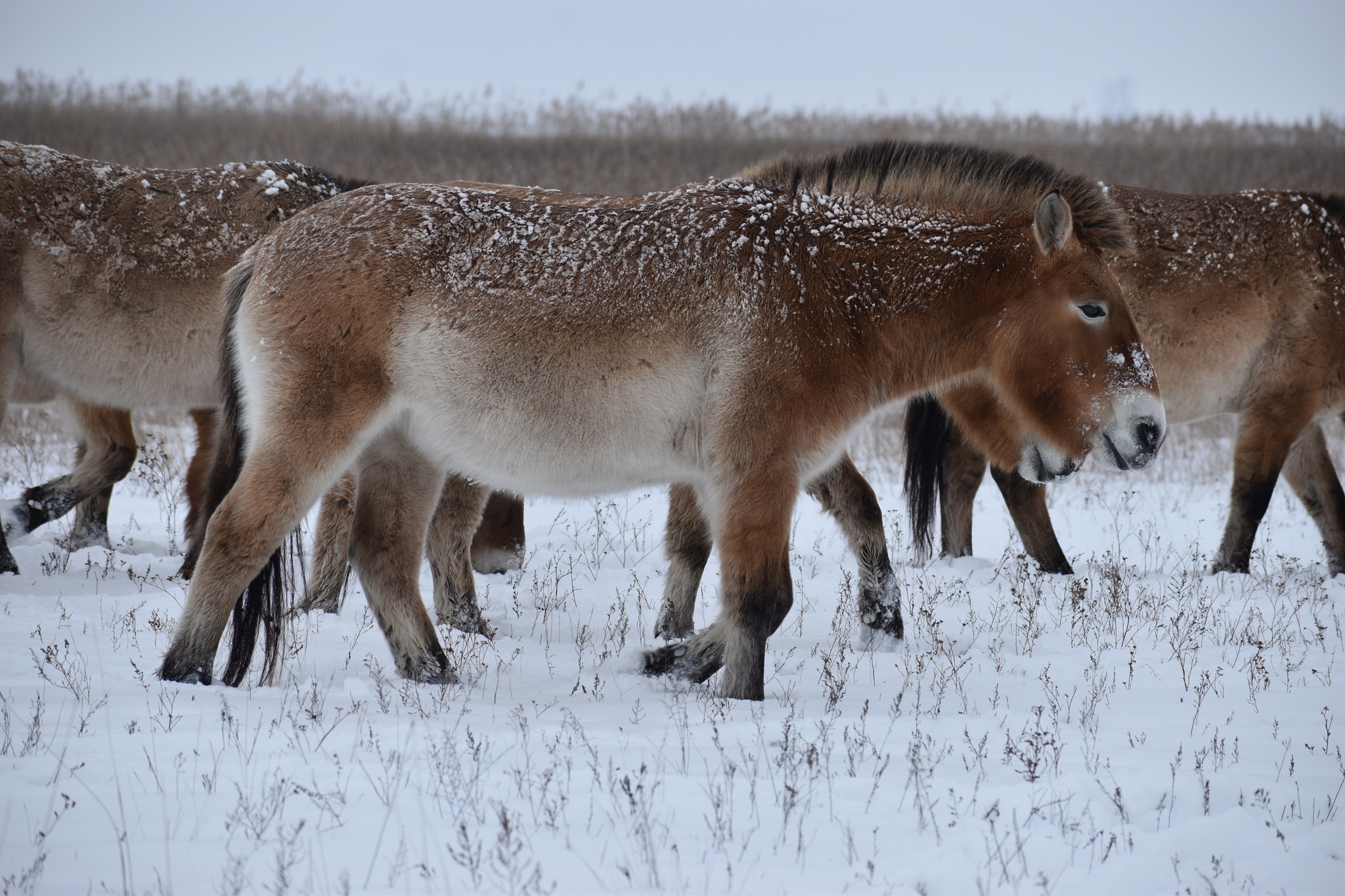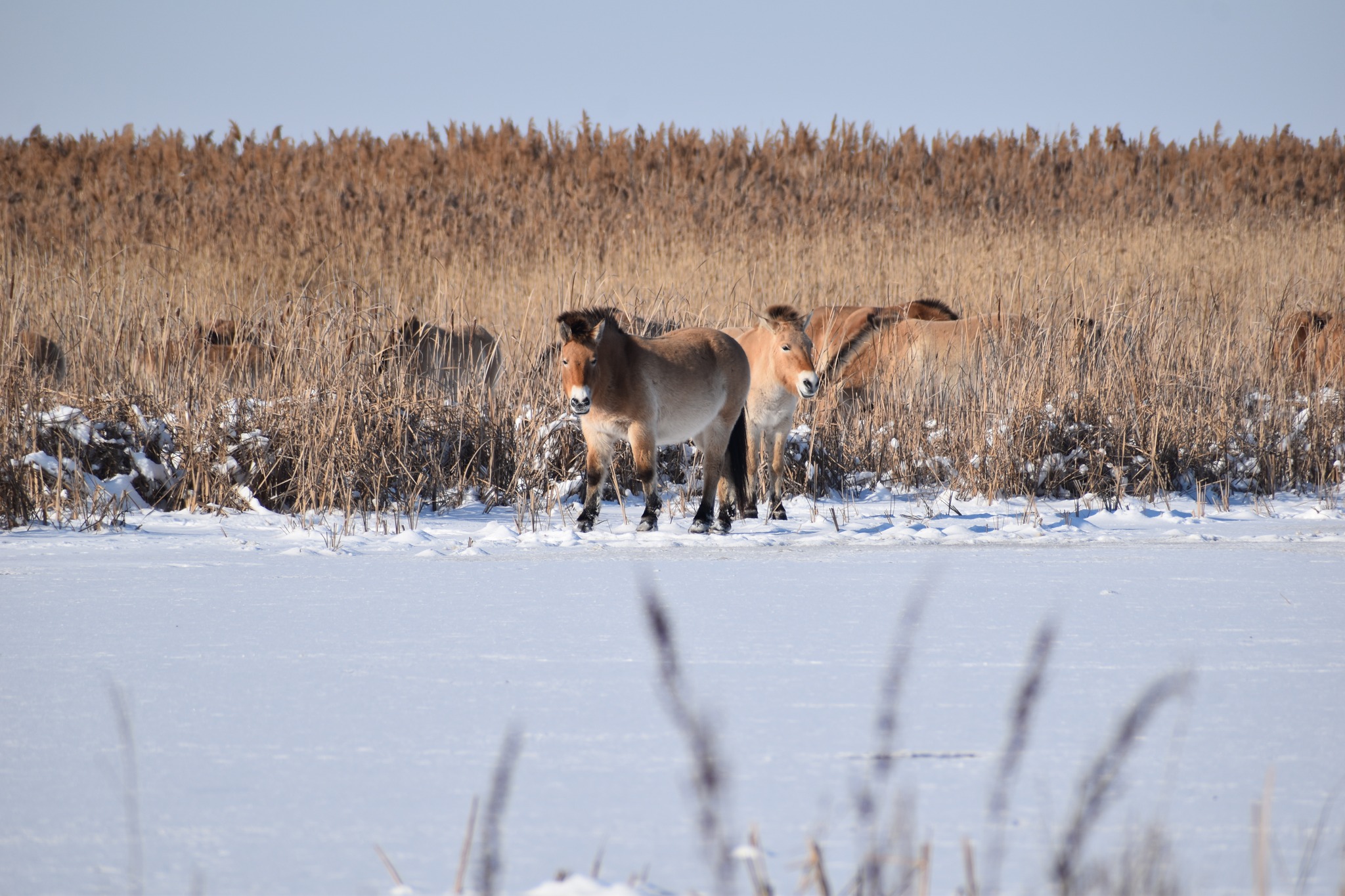 2026 januárban az elmúlt évekhez képest szokatlanul nagyobb mennyiségű hó, és hideg érkezett a Pentezug Rezervátumba. Habár mi ettől kicsit elszoktunk, a rezervátumban élő Przewalski-lovak számára ez nem okoz gondot, hiszen a 2025 őszi csapadéktól és viszonylag melegebb hőmérséklettől az élőhelyük vegetációja a nyári aszály után meg tudott újulni annyira, hogy megfelelő zsírtartalékot halmozzanak fel az előttük álló téli időszakra. Köszönhetően ennek az állatok kondíciója és a tömött téli bundája nagyszerű védelmet nyújt a hidegben