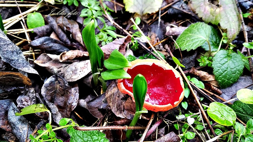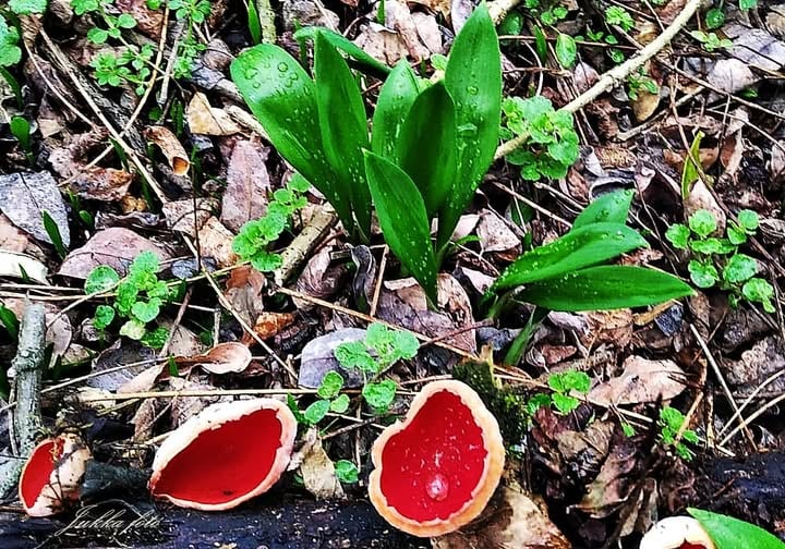Tavalyi évhez képest egy héttel később néztük meg az egyik medvehagymás erdőrészt. Ugyan még nem nagyok, de biztatóan bújnak elő. A medvehagymát salátába, pogácsába, krémlevesbe használom, de van egy olyan kalács receptem is, amit szintén medvehagymával gazdagítok. Ilyenkor februárban már piroslanak a piros és az osztrák csészegombák. Itt fontos kiemelnem, hogy pontos határozásukat csak mikroszkóppal lehet megállapítani. Az idei télutón a piros csészegombák közt a szokottnál korábban lehet találni narancsszínű csészegomba fajt is
