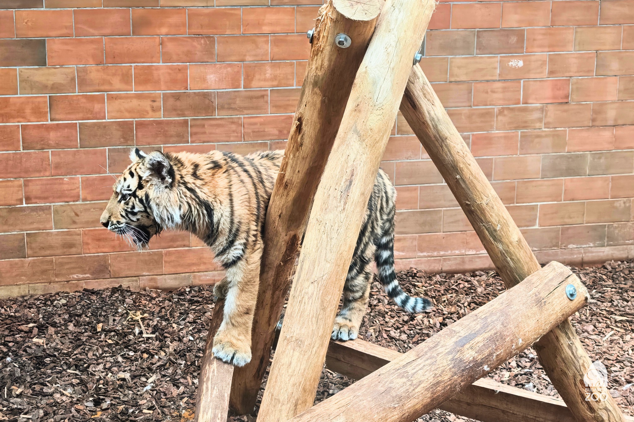 A kistigris az év második napján foglalta el ideiglenes helyét az India-ház egyik belső kifutójában. Azóta sokat nőtt és erősödött.