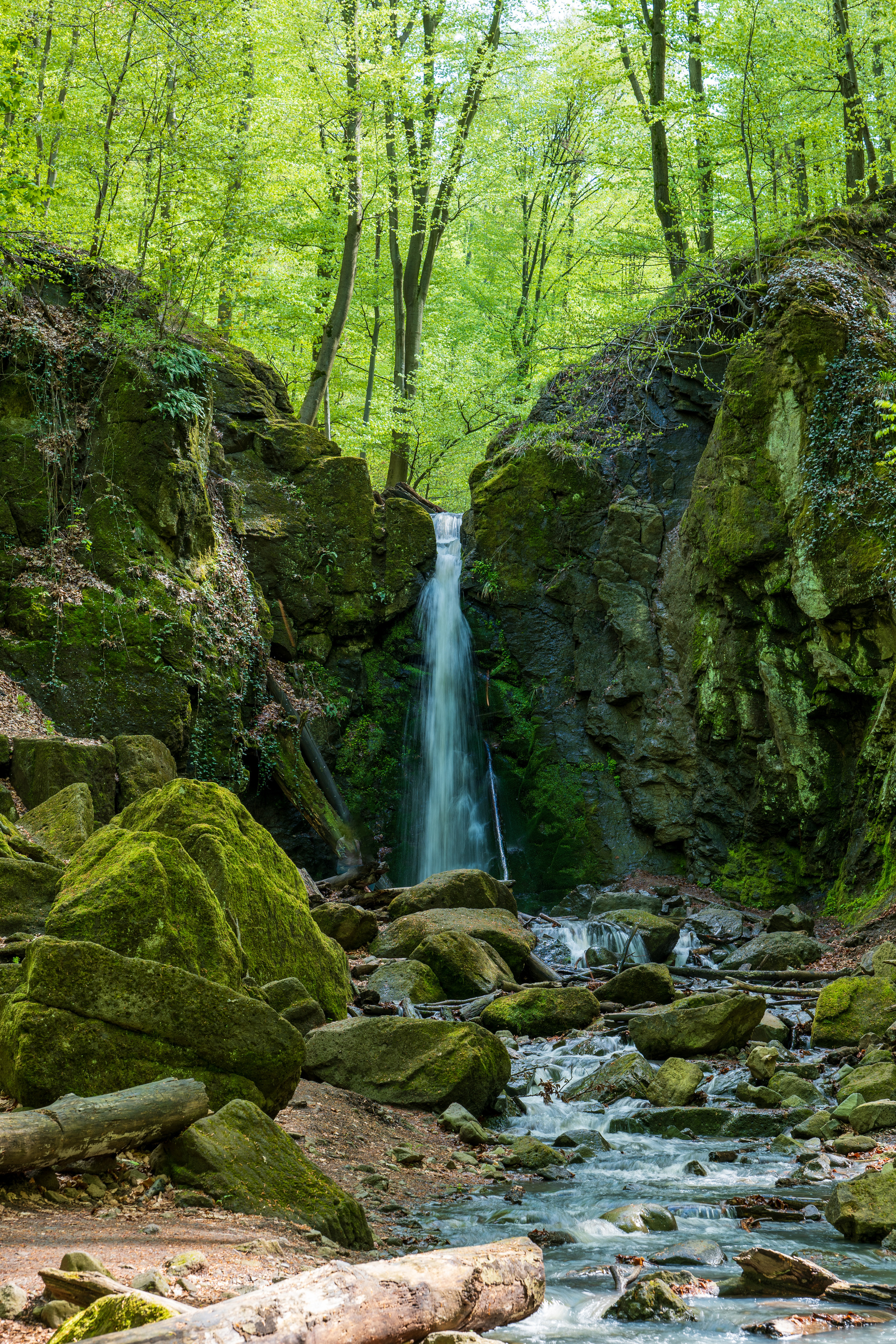 A közel 10 méteres sziklafalon alábukó patak hazánk legnagyobb természetes vízesése. A meredek zuhanással a katlanba érkező víz nagy tömbökre szaggatta az alapkőzetet. Tekintélyes méretű, szanaszét dobált farönkök mutatják az időnként felbőszülő patak erejét. Különös hangulatot árasztanak a kőemberek, melyeket a patak által lekerekített szikladarabkákból építettek a túrázók.