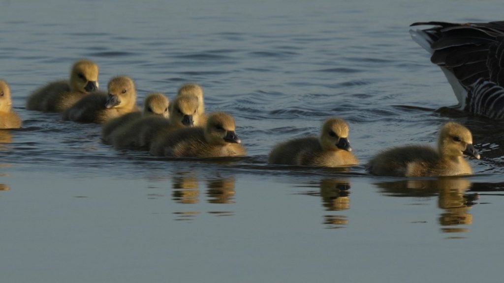 Április közepére beindult az élet a hazai vizes élőhelyeken: a nyári ludak fiókái sorra kikeltek, és már a vízen, illetve a part menti gyepeken követik szüleiket.