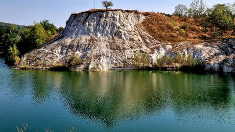 A tó az egykori dolomitbánya helyén feltört karsztvíz rendszerre épül.